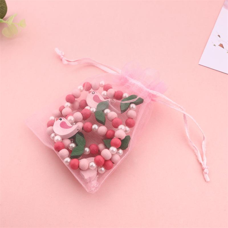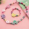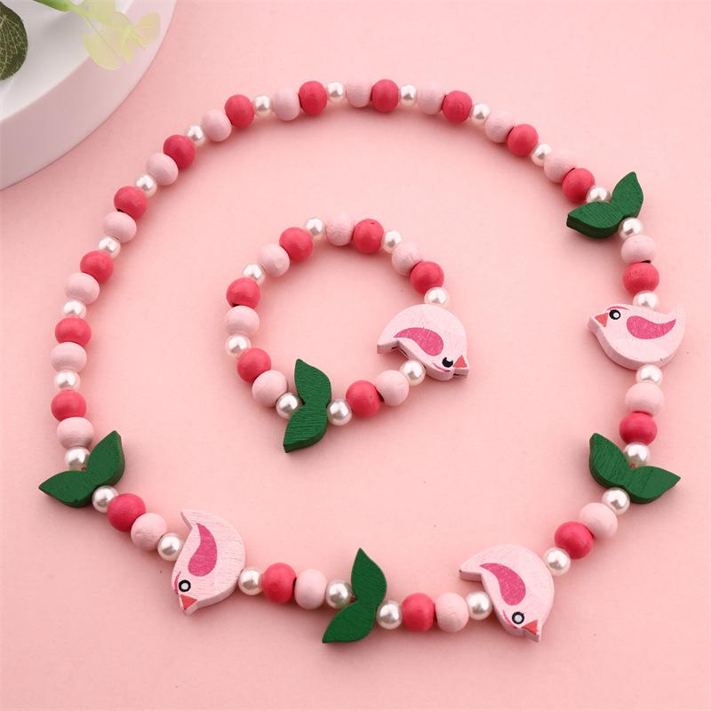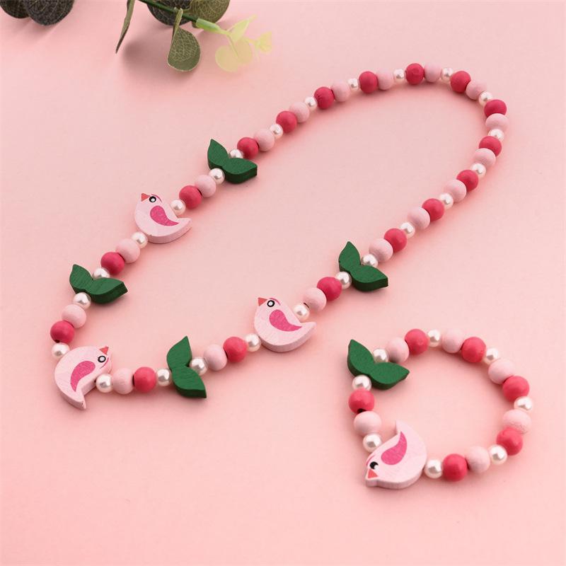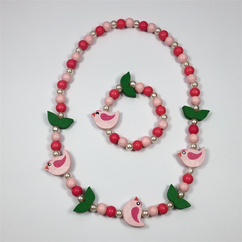 Nova Pulseira Infantil Forma de Pássaro Contas de Madeira Folhas Pulseira Colar Conjunto de Jóias diy Presentes Infantis