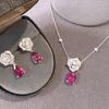 Longlongjin jóias transmissão ao vivo novo S925 prata micro-incrustado Camélia 9*12 Rosa Diamante Vermelho colar feminino clavícula cadeia pingente