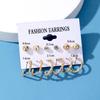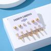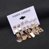Conjunto de brincos geométricos novos transfronteiriços, 6 peças, criativo, simples, retrô, geométrico, quadrilátero, lindos, brincos de pérola