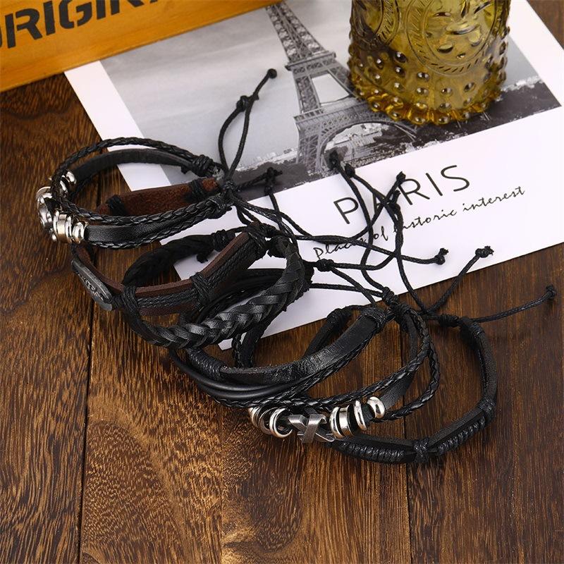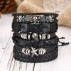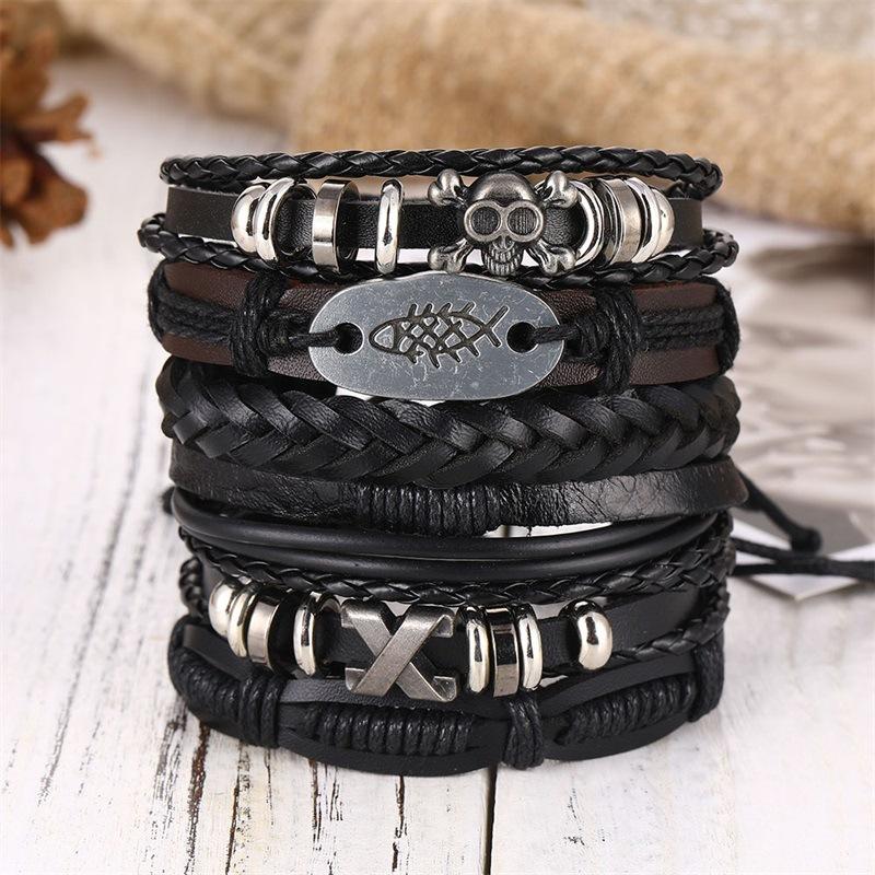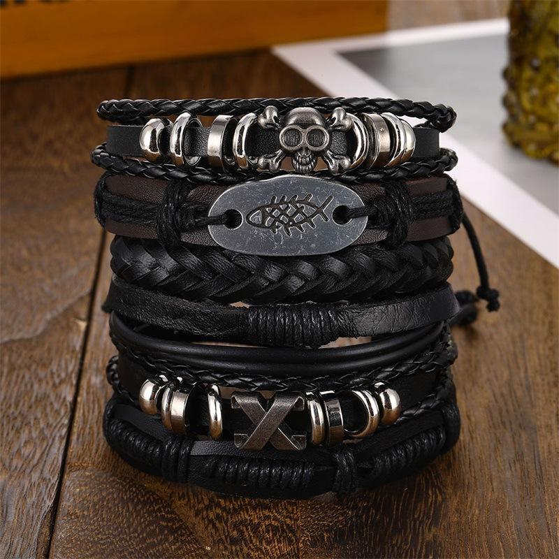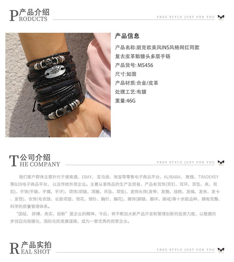 Mu Shang crânio de couro vintage multi-camada Pulseira dos homens europeus e americanos novo estilo hip-hop pulseira de jóias tecidas atacado