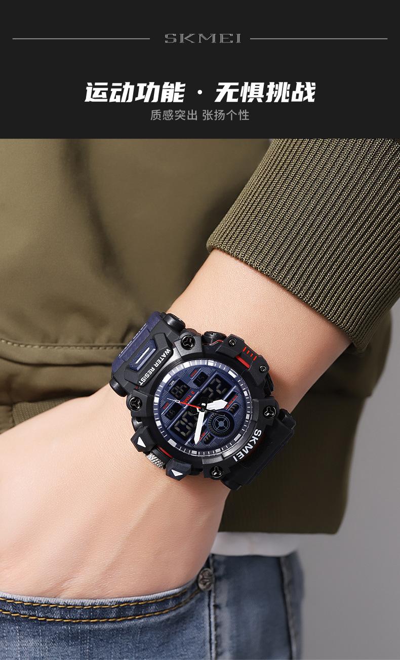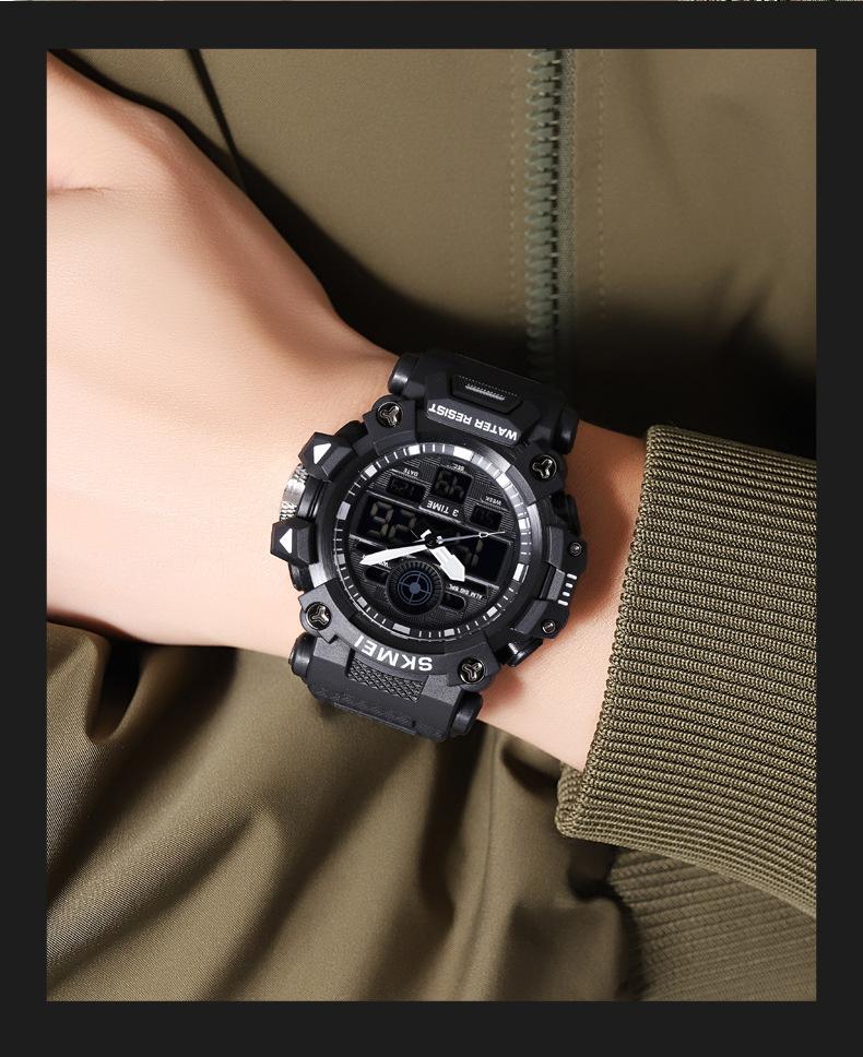 Relógio Eletrônico Multifuncional Masculino com Display Duplo Atacado Transfronteiriço Relógio de Comércio Exterior Relógio Esportivo Impermeável Masculino da Moda