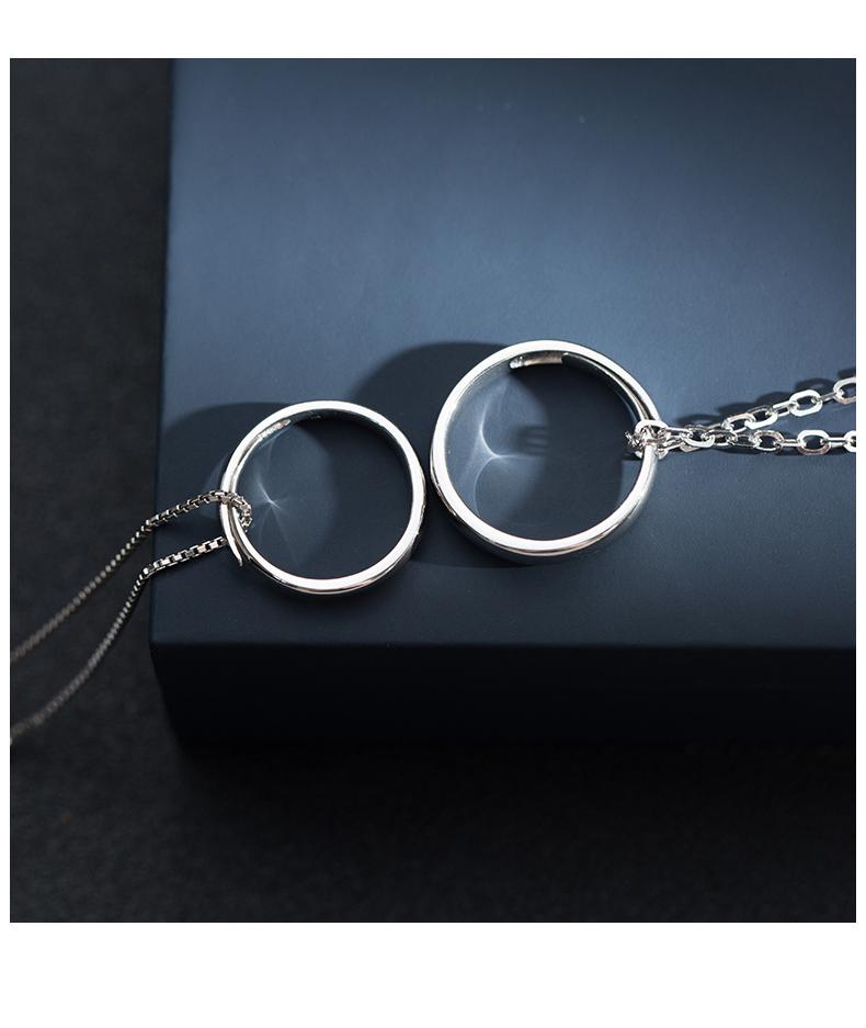 Colar de casal em prata 925, par de anéis e pingentes femininos, presente comemorativo de dia dos namorados para estudantes
