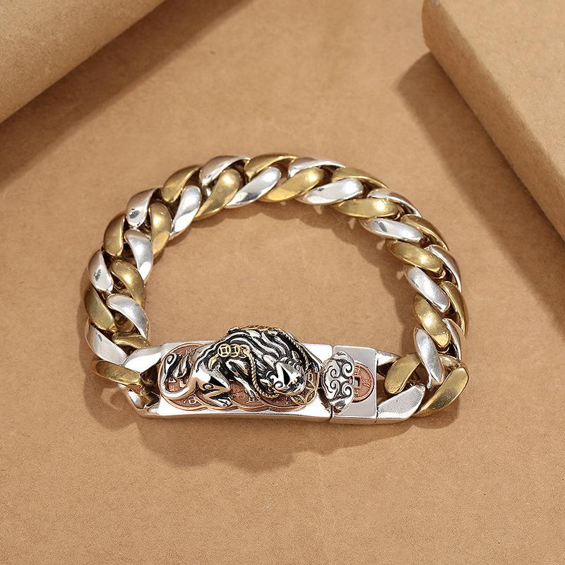 Retro estilo étnico grande pulseira chique dos homens na moda de alta qualidade nicho design all-match moeda de cobre sólida pulseira personalizada