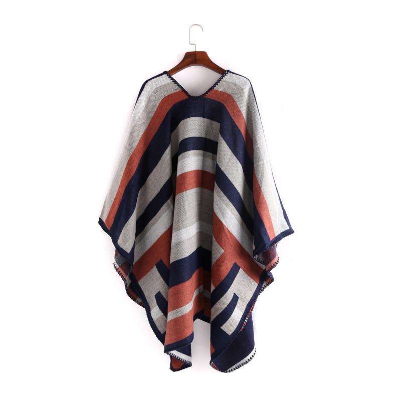 Xale feminino outono e inverno moda feminina versão coreana xale quente capa externa listrada cor combinando xale 2024 novo