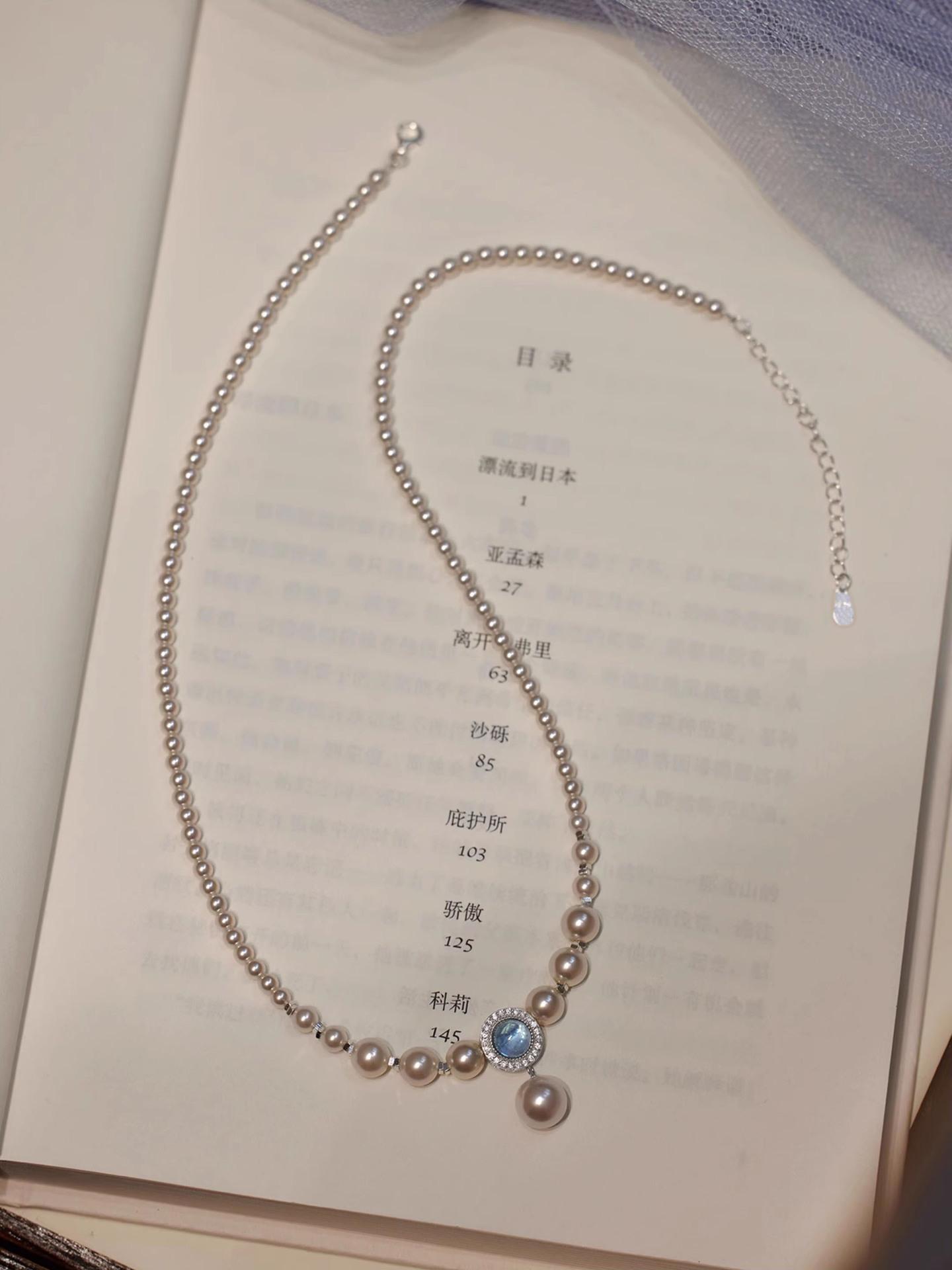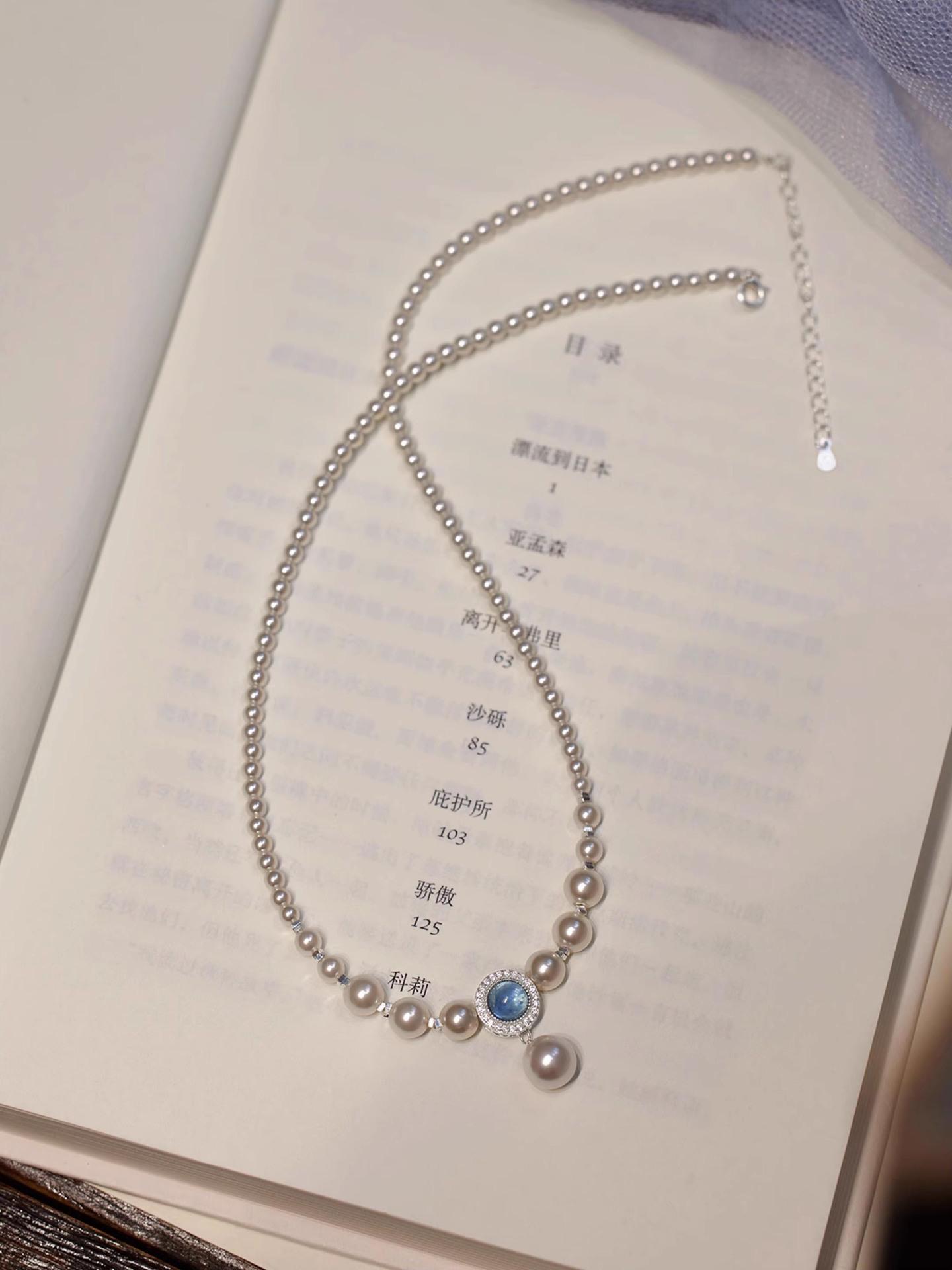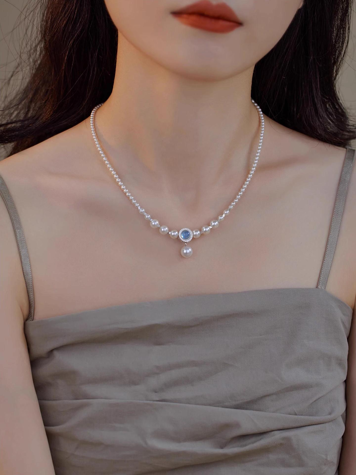 S925 prata esterlina natural aquamarine colar feminino forte luz redonda imitação Shijia Pearl ins nicho luz luxo estilo colar