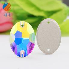 Fabricantes atacado fundo plano oval costurado à mão diamante duplo furo botão plano costurado à mão pedra roupas vestido de noiva dança roupas acessórios