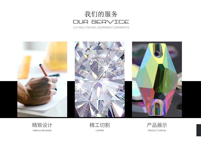 Fábrica de atacado de vidro fundo plano diamante gota d'água costurado à mão diamante super brilhante AB cor caixa branca peça inteira embalagem não desbota