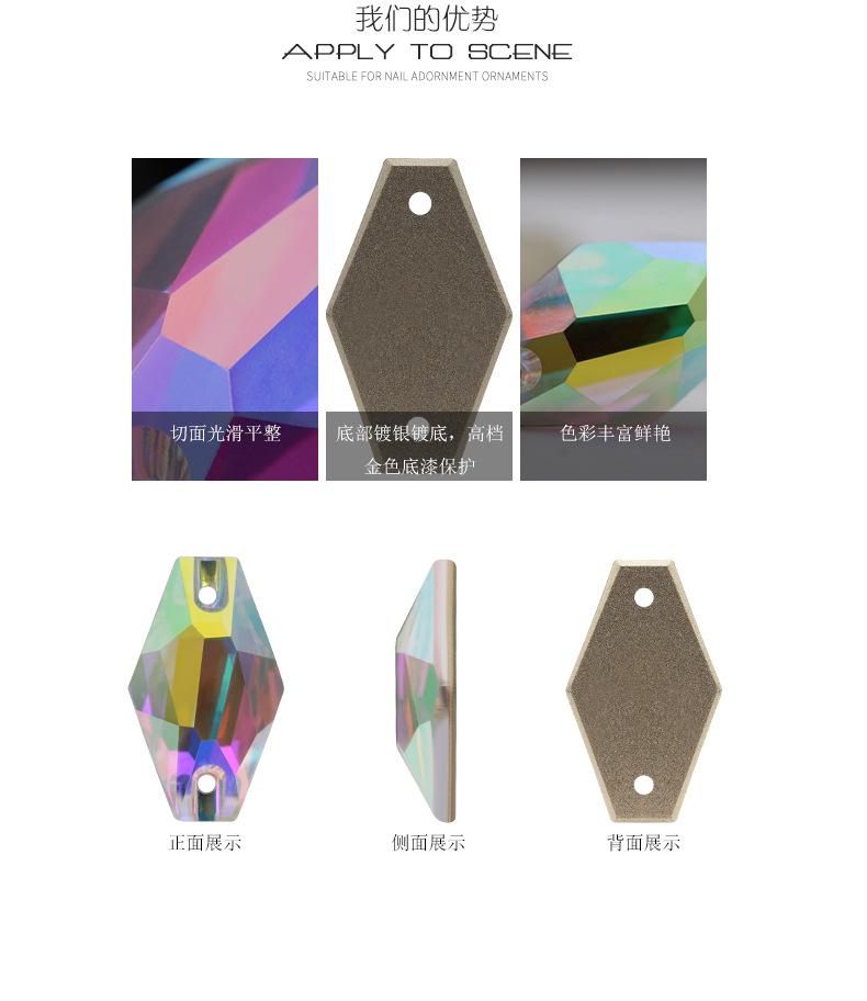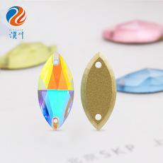 Fábrica atacado fundo plano vidro costurado à mão diamante olho de cavalo diamante fivela plana super flash AB cor fundo banhado a ouro