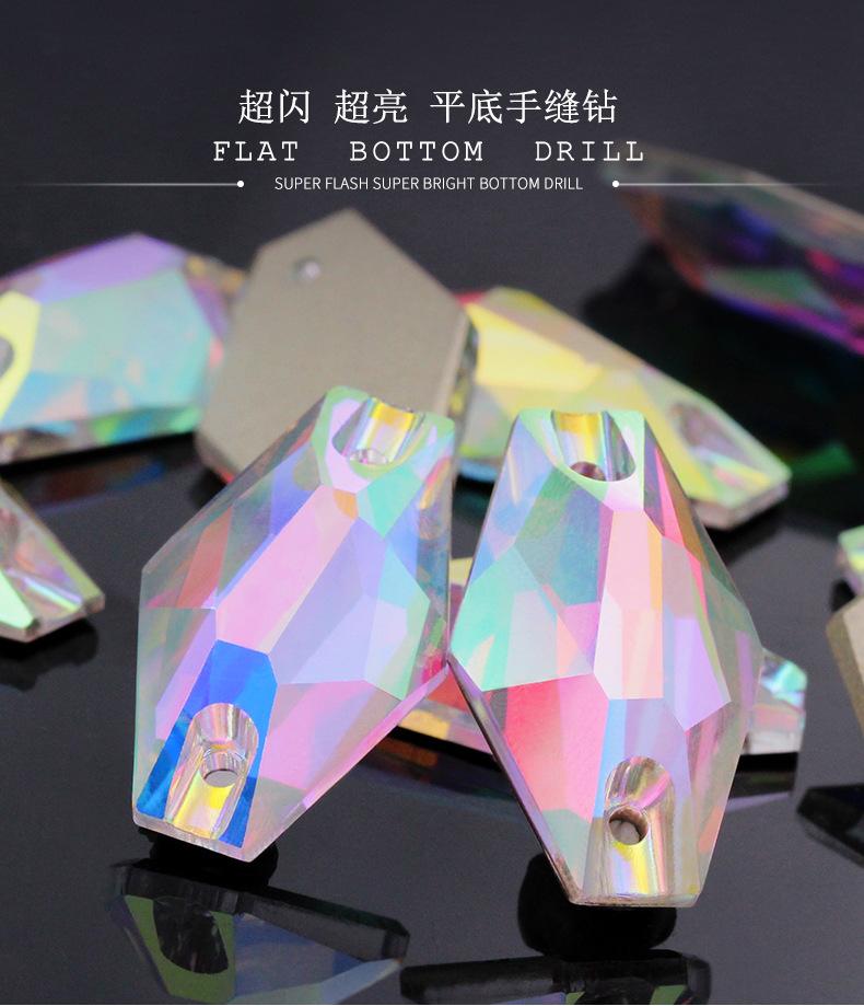 Fabricantes atacado fundo plano especial em forma de broca de costura à mão vidro duplo furo broca sapato acessórios broca super flash AB cor