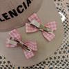 Estilo coreano doce bonito rosa branco xadrez pequeno arco par clipe de cabelo infantil clipe lateral franja clipe