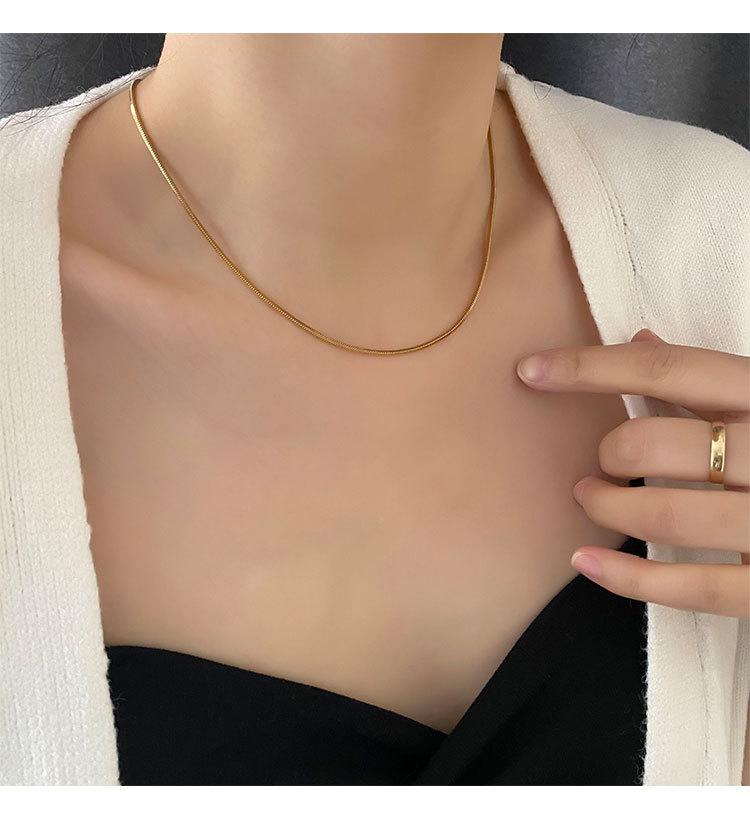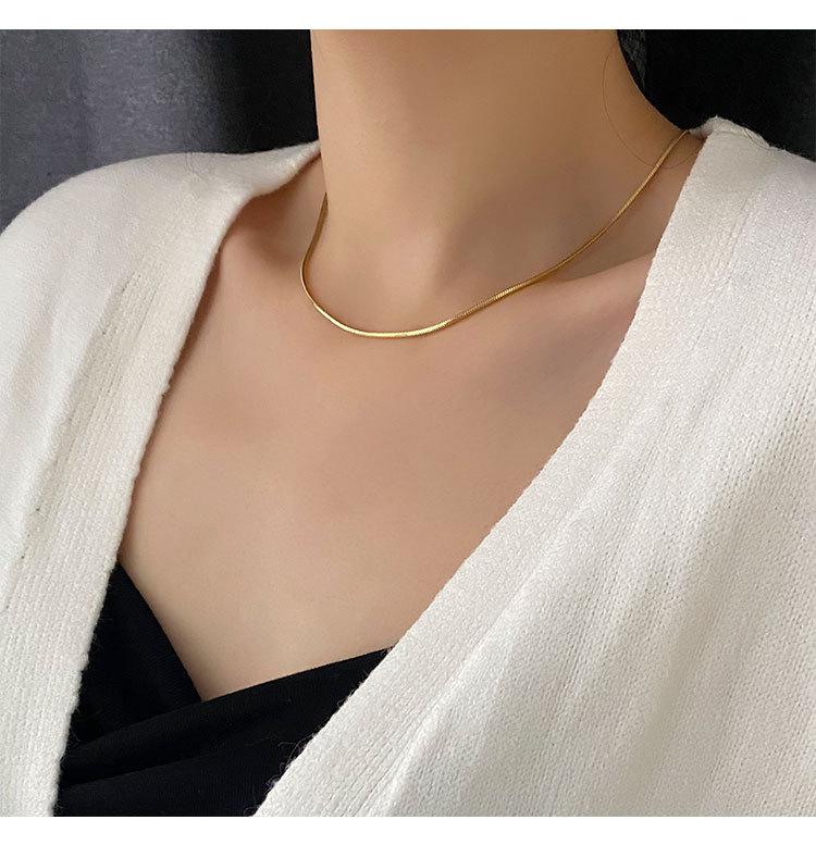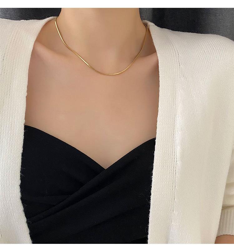 Colar de corrente de osso de cobra quadrado, material de aço de titânio de alta qualidade, banhado a ouro, colar de ouro 18K, corrente de clavícula empilhada, não desbota