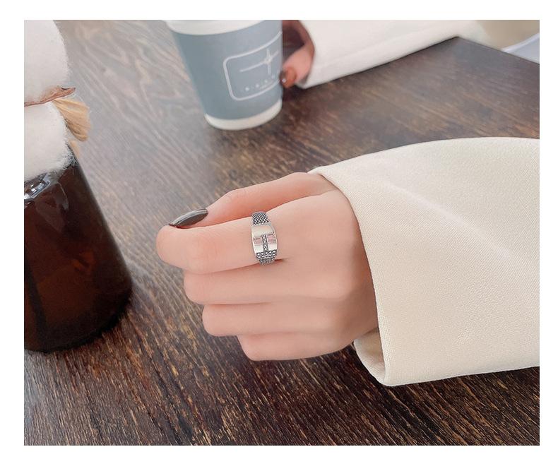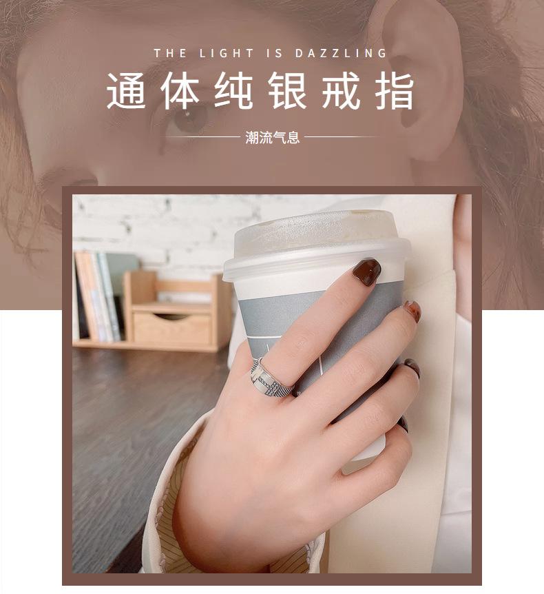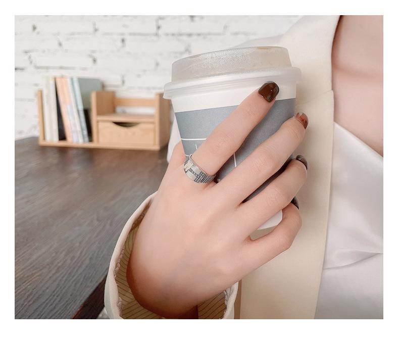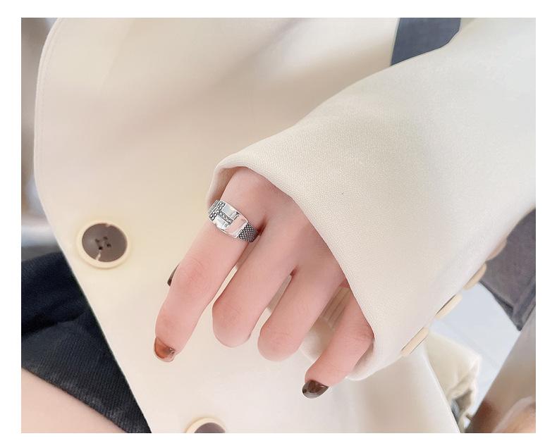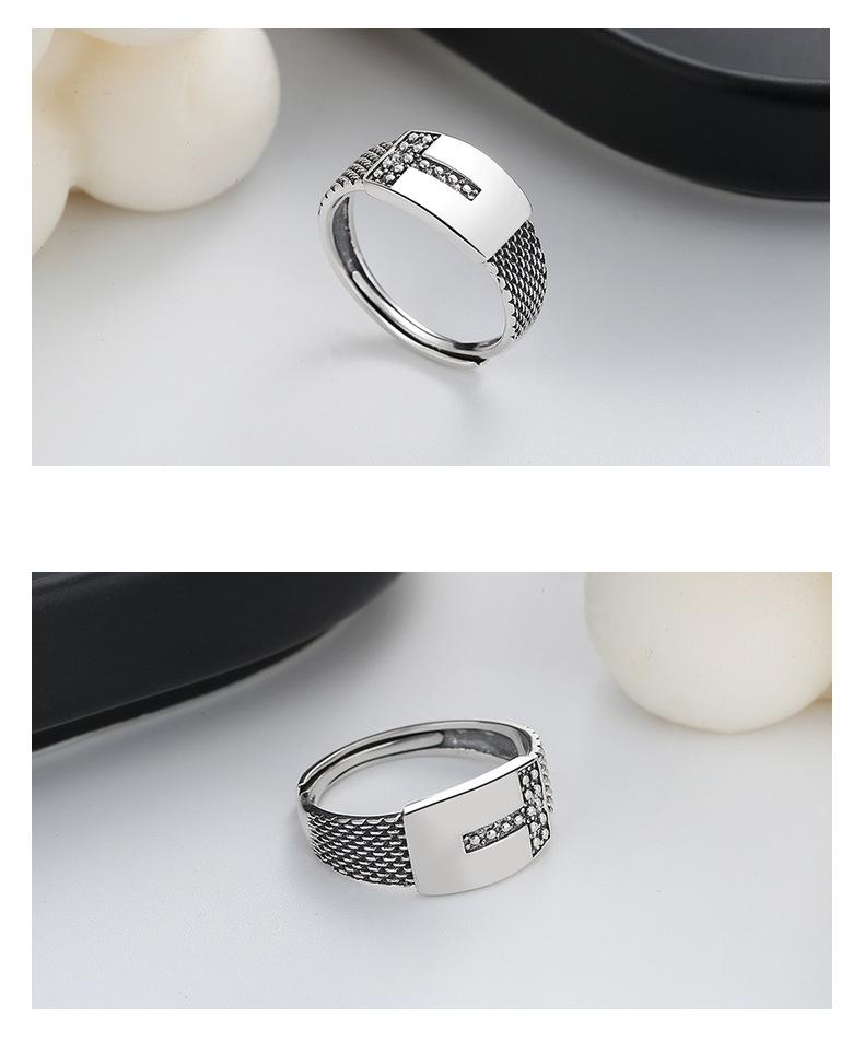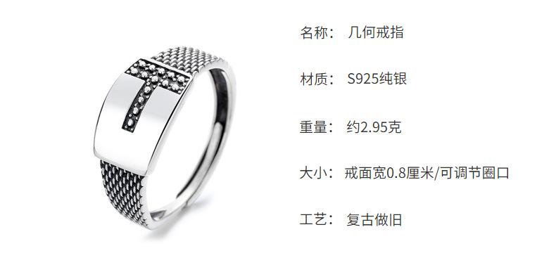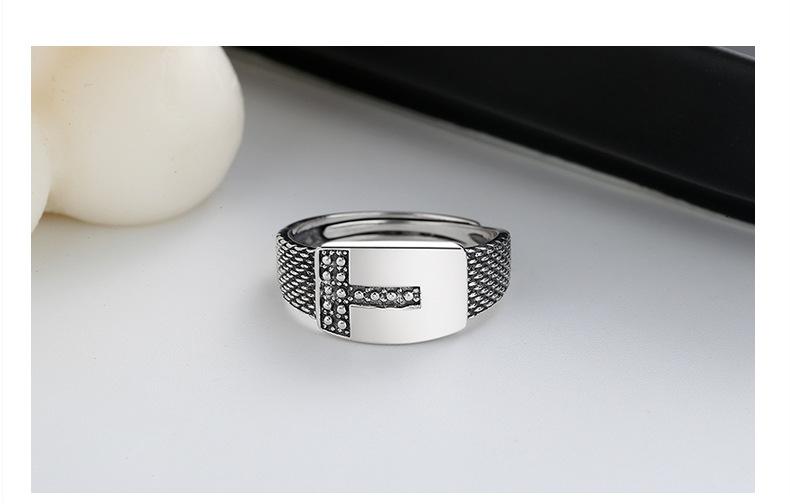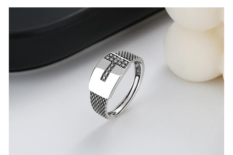 Chao Sheng s925 prata esterlina retro geométrica T literal anel de prata tailandesa estilo europeu e americano hip hop tendência doce estilo legal anel de comida