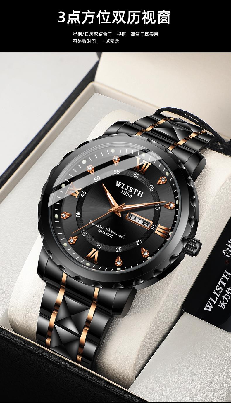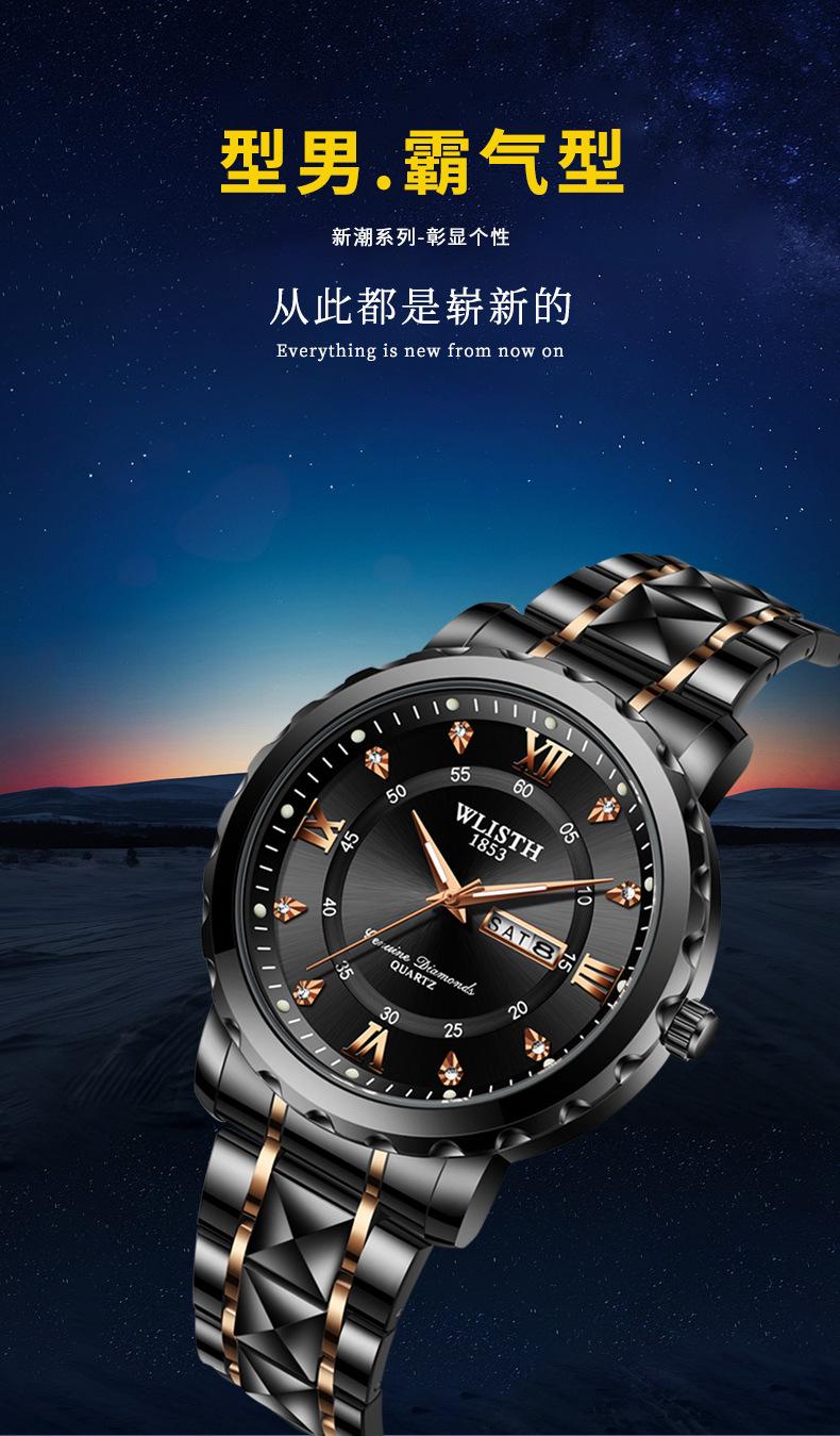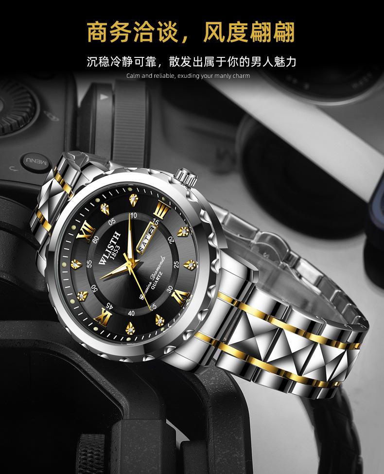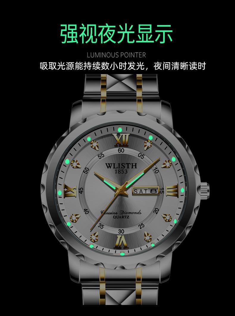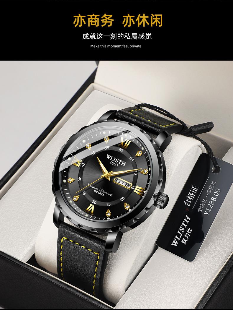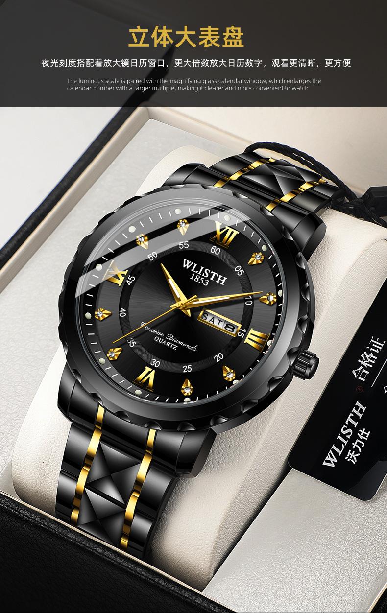 Relógio de pulso masculino com mostrador grande, relógio de pulso de quartzo com calendário duplo, luminoso e à prova d'água, para comércio exterior