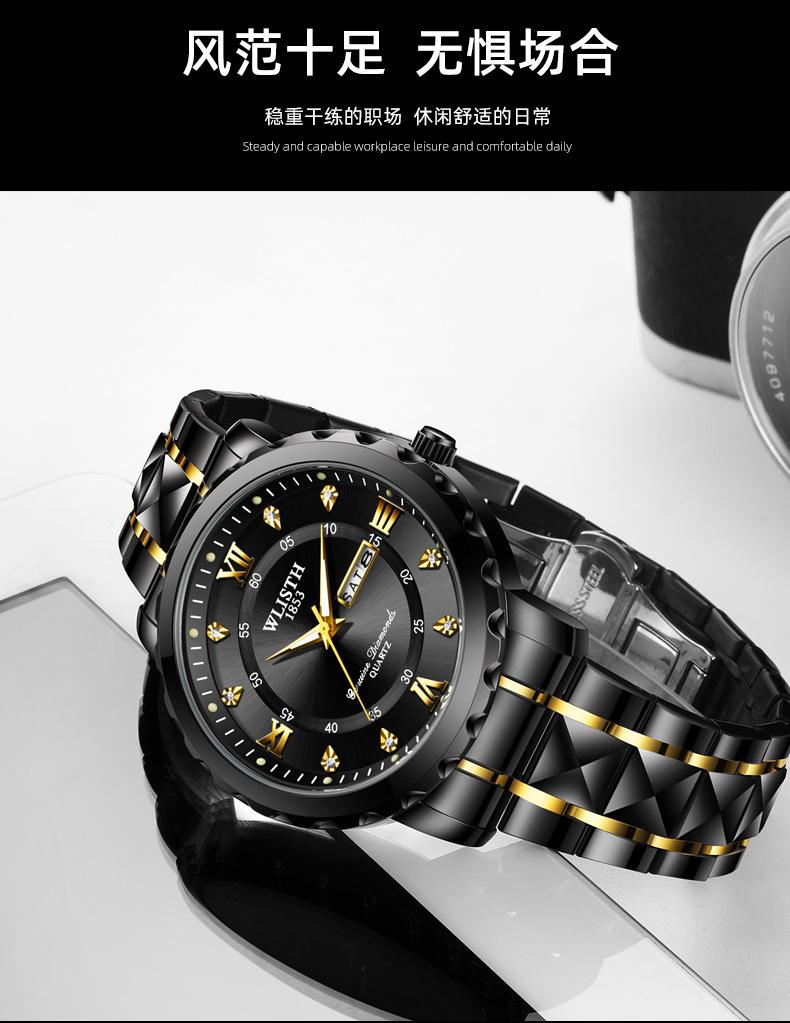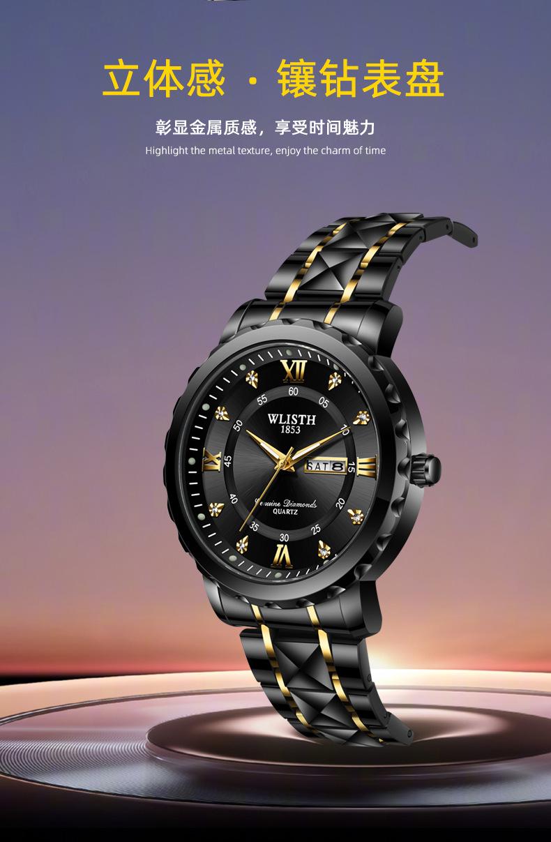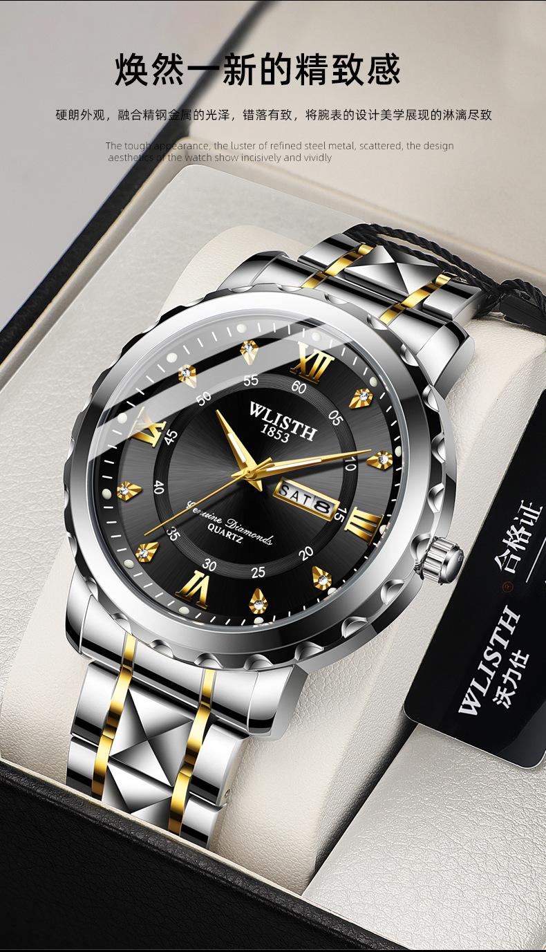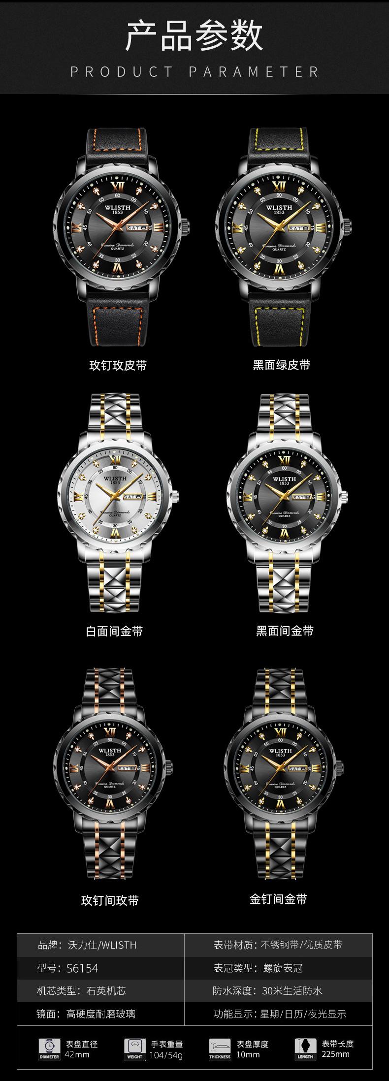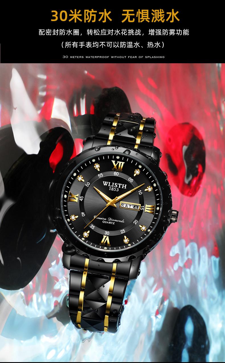 Relógio de pulso masculino com mostrador grande, relógio de pulso de quartzo com calendário duplo, luminoso e à prova d'água, para comércio exterior