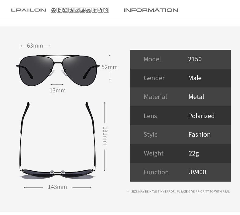 | Leipailong novos óculos de sol de voo para homens, direção ao ar livre, uso diurno e noturno, óculos de sol polarizados, óculos de pesca da moda |