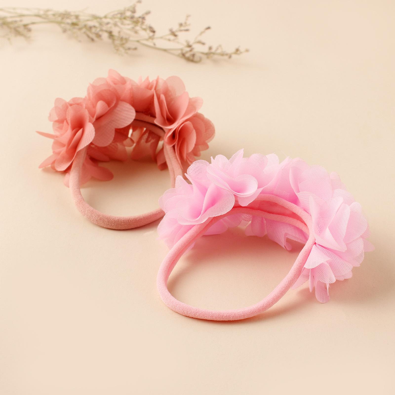 Nome do produto: Faixa de cabeça de bebê com flores de chiffon