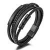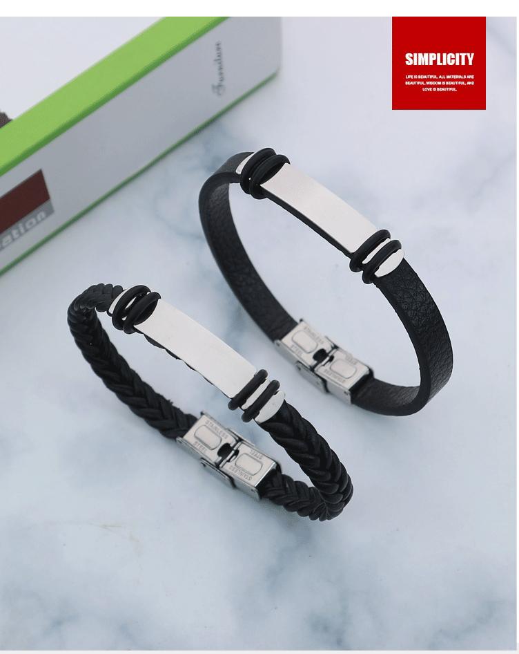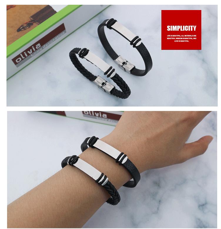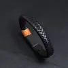 Fornecimento de comércio eletrônico transfronteiriço retrô preto tecido pulseira masculina de aço inoxidável moda titânio aço DIY pulseira de couro atacado