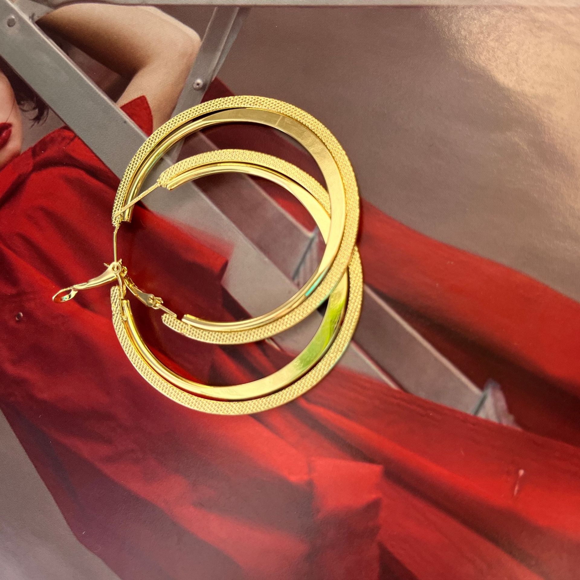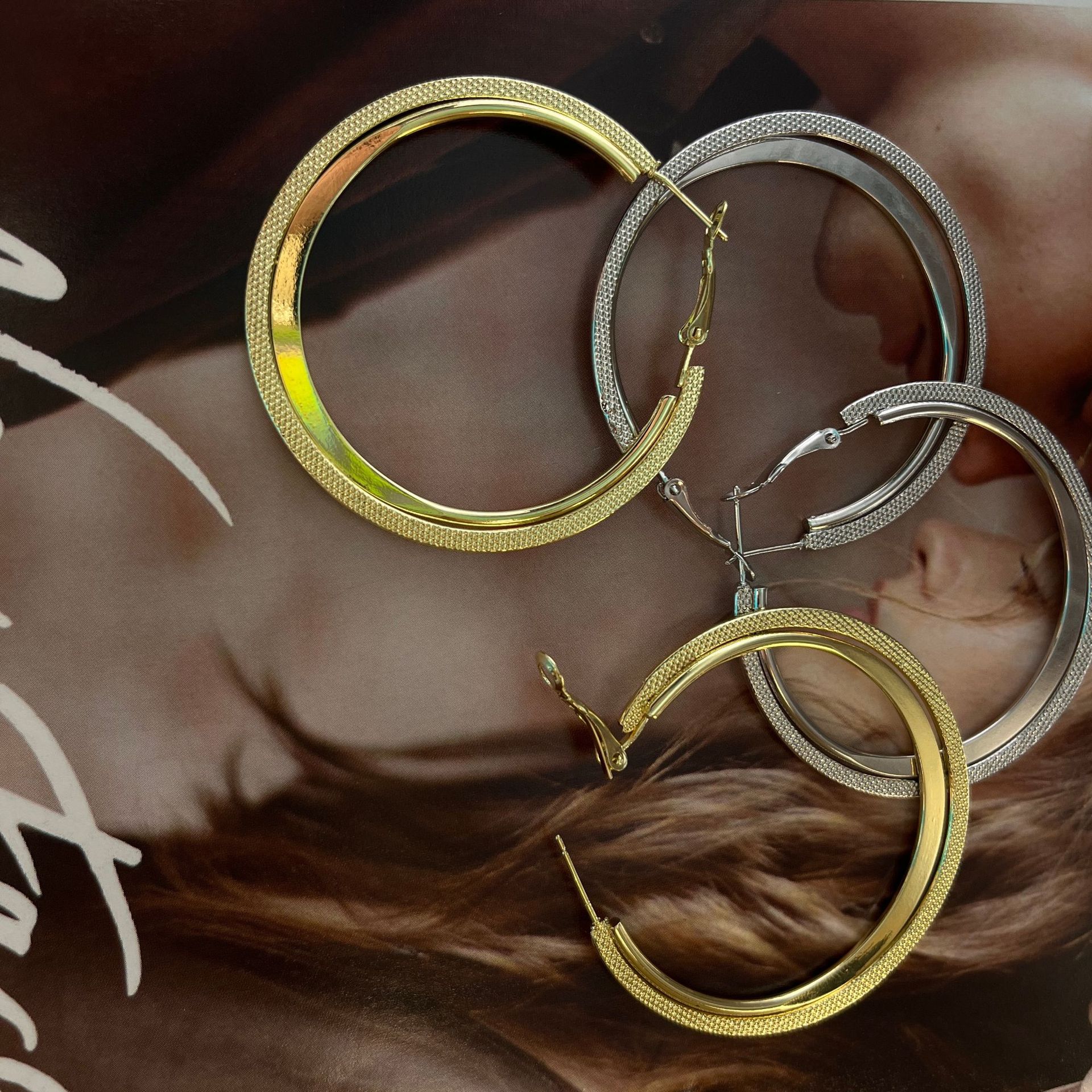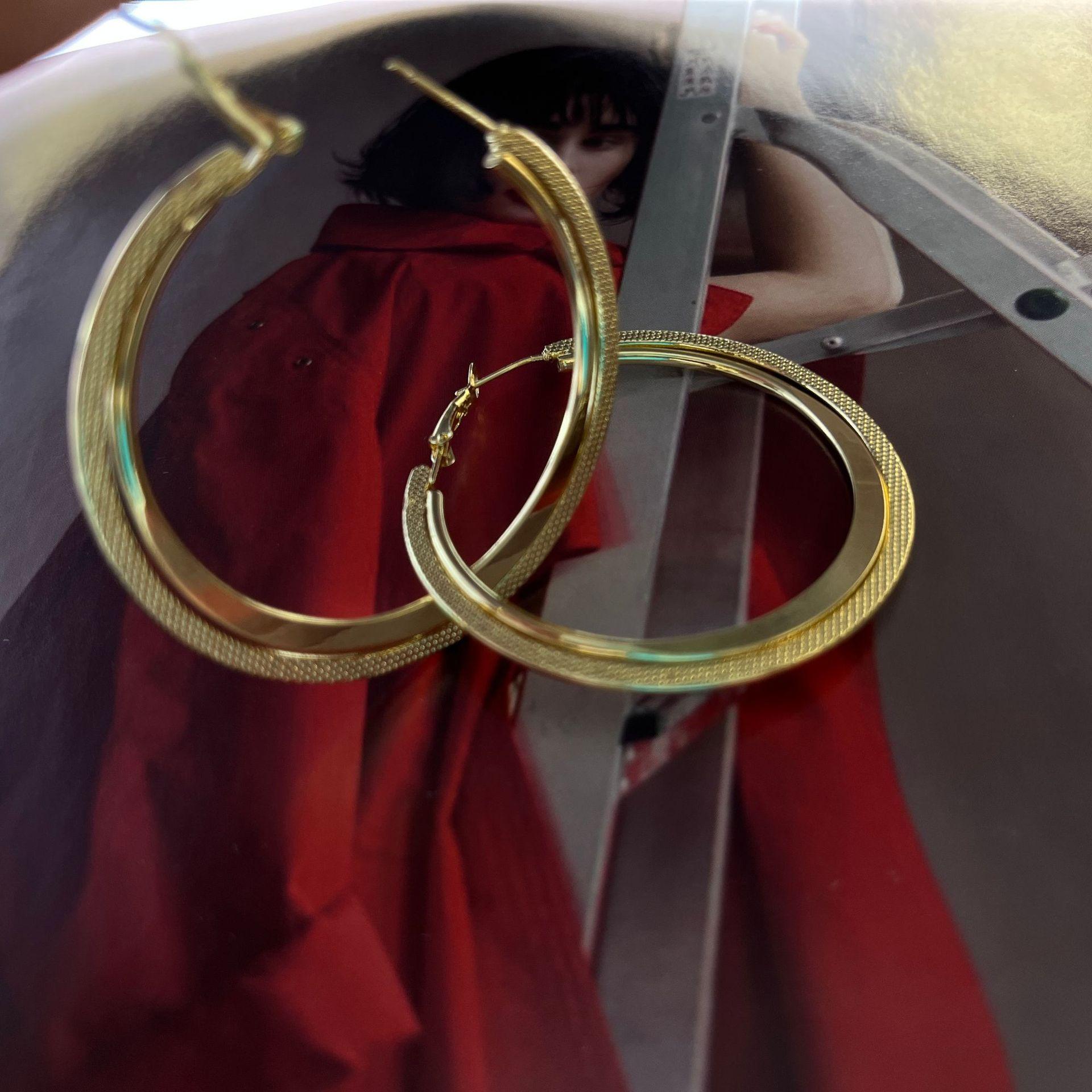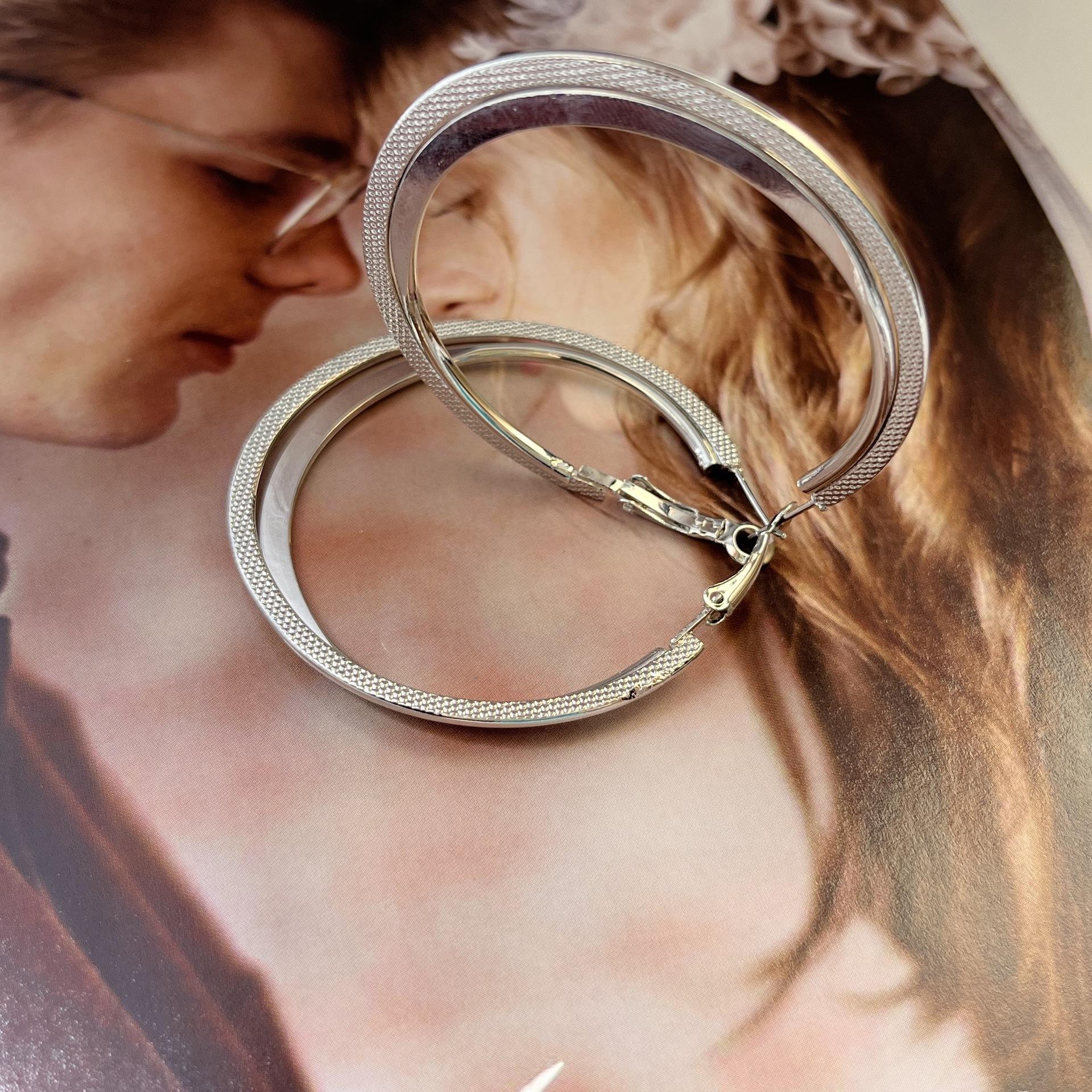 Novo S925 Agulha de Prata Círculo de Metal Atmosférico Brincos Exagerados Estilo Coreano Retro Internet Celebridade Emagrecimento Geométrico Brincos Modernos