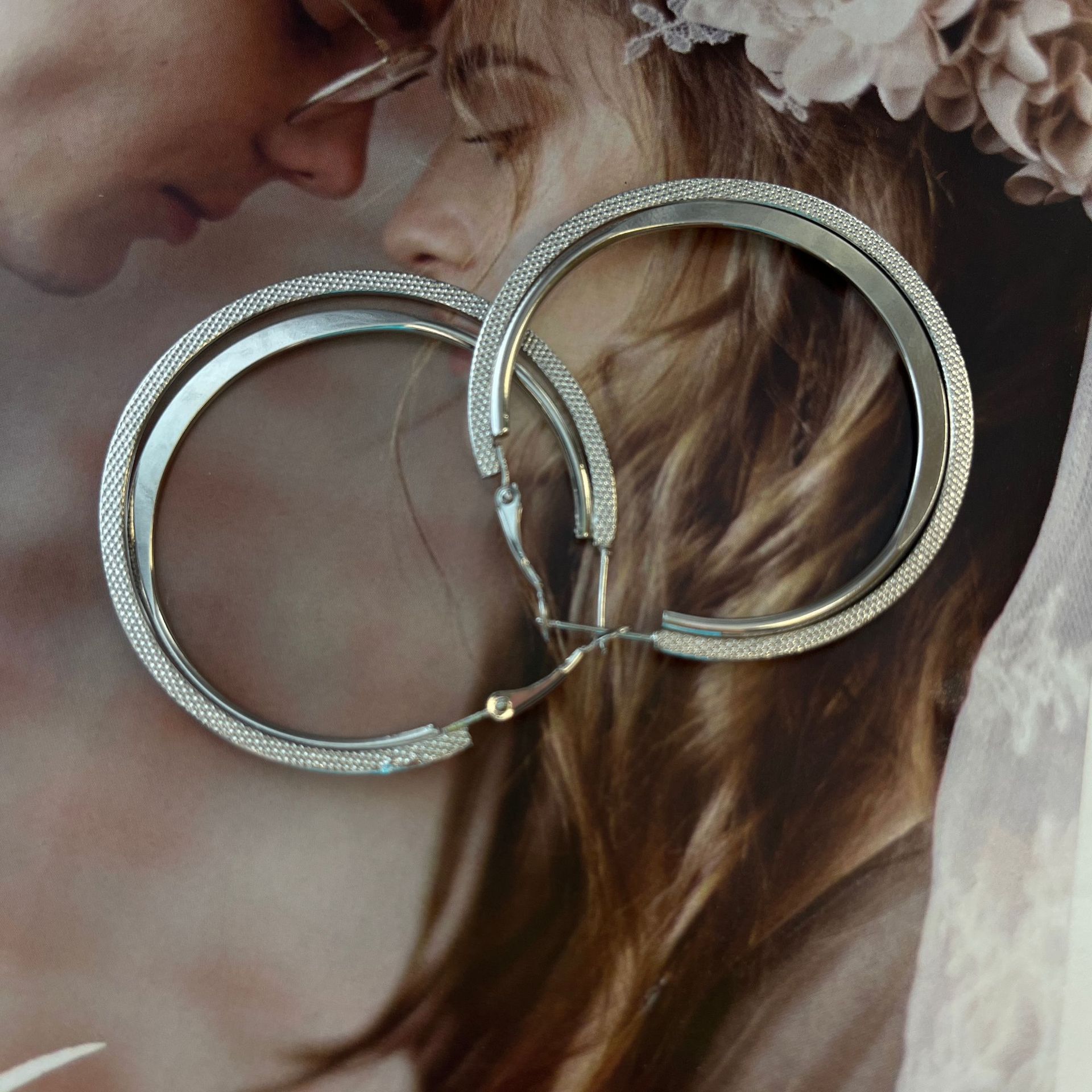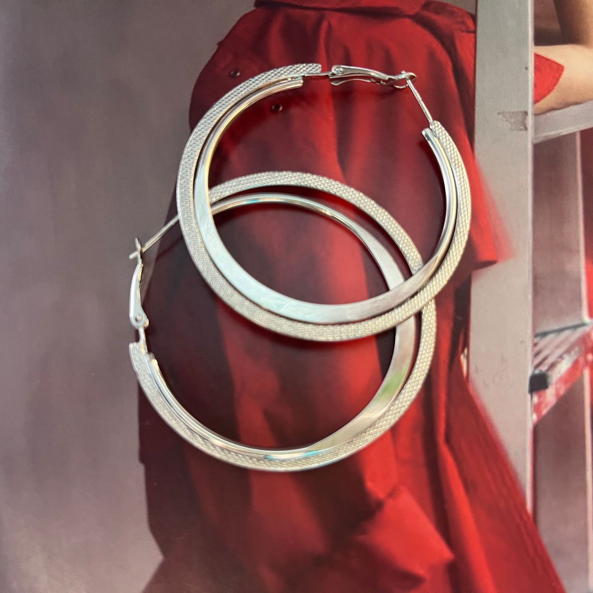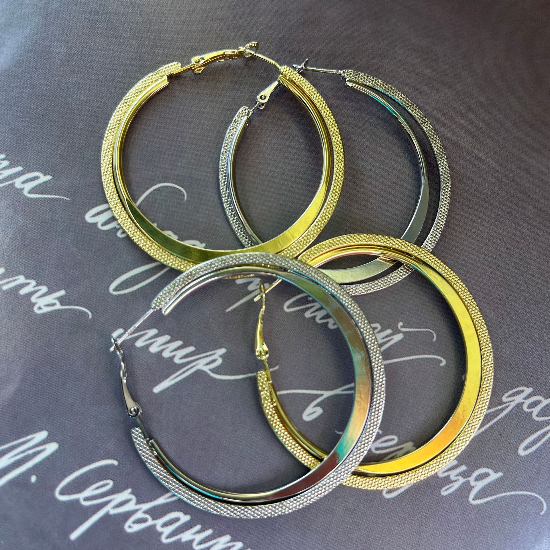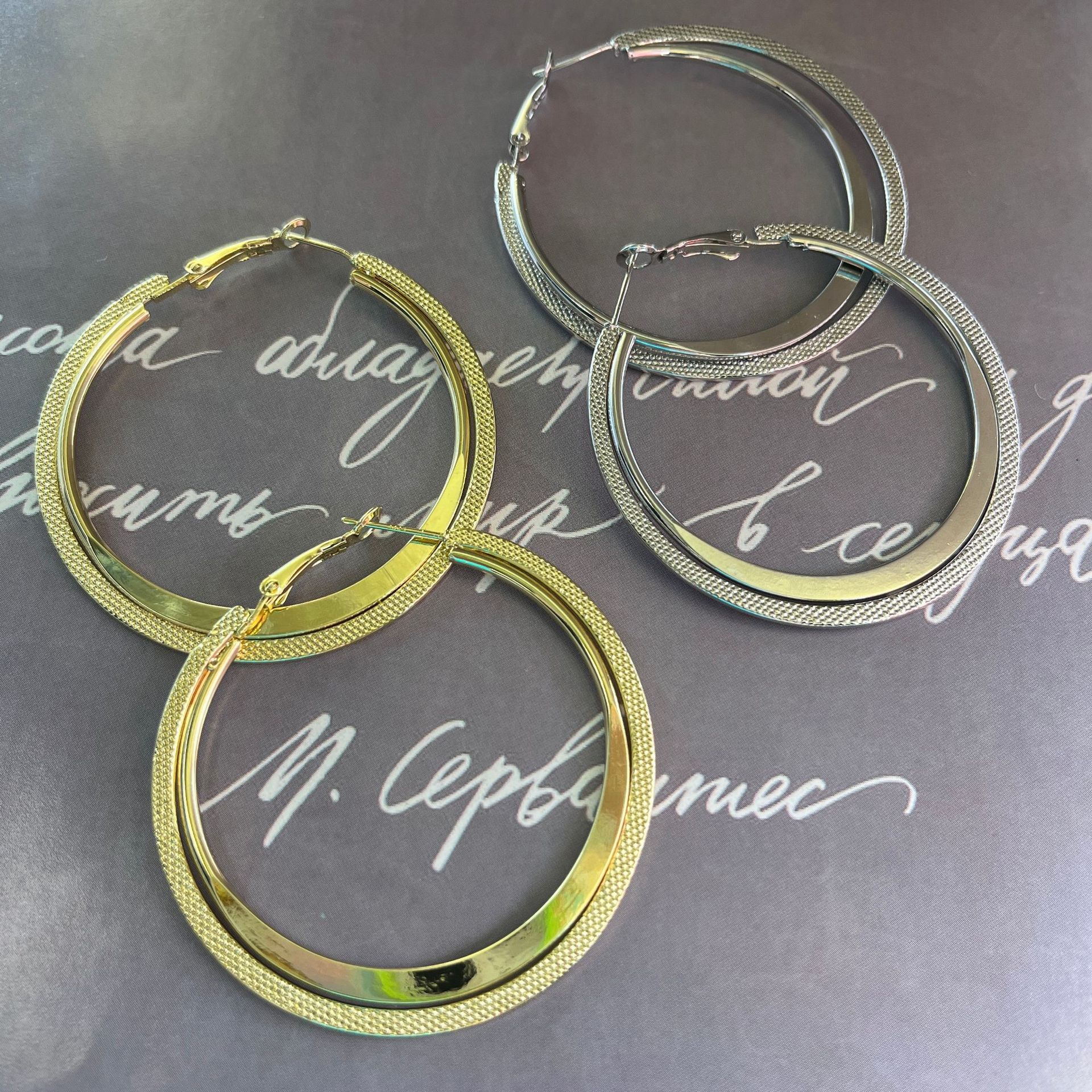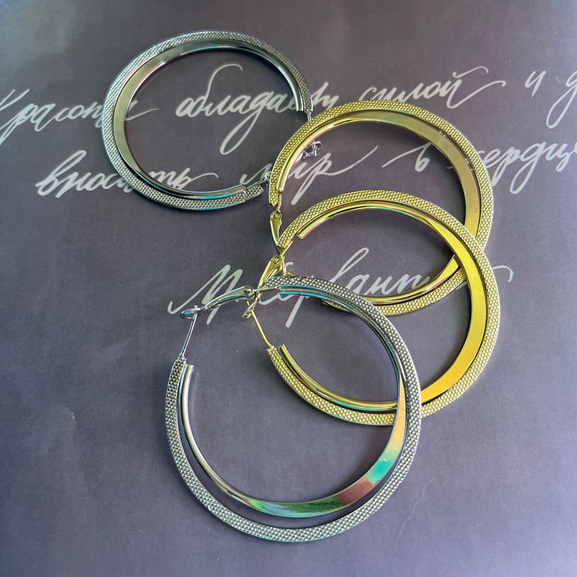 Novo S925 Agulha de Prata Círculo de Metal Atmosférico Brincos Exagerados Estilo Coreano Retro Internet Celebridade Emagrecimento Geométrico Brincos Modernos