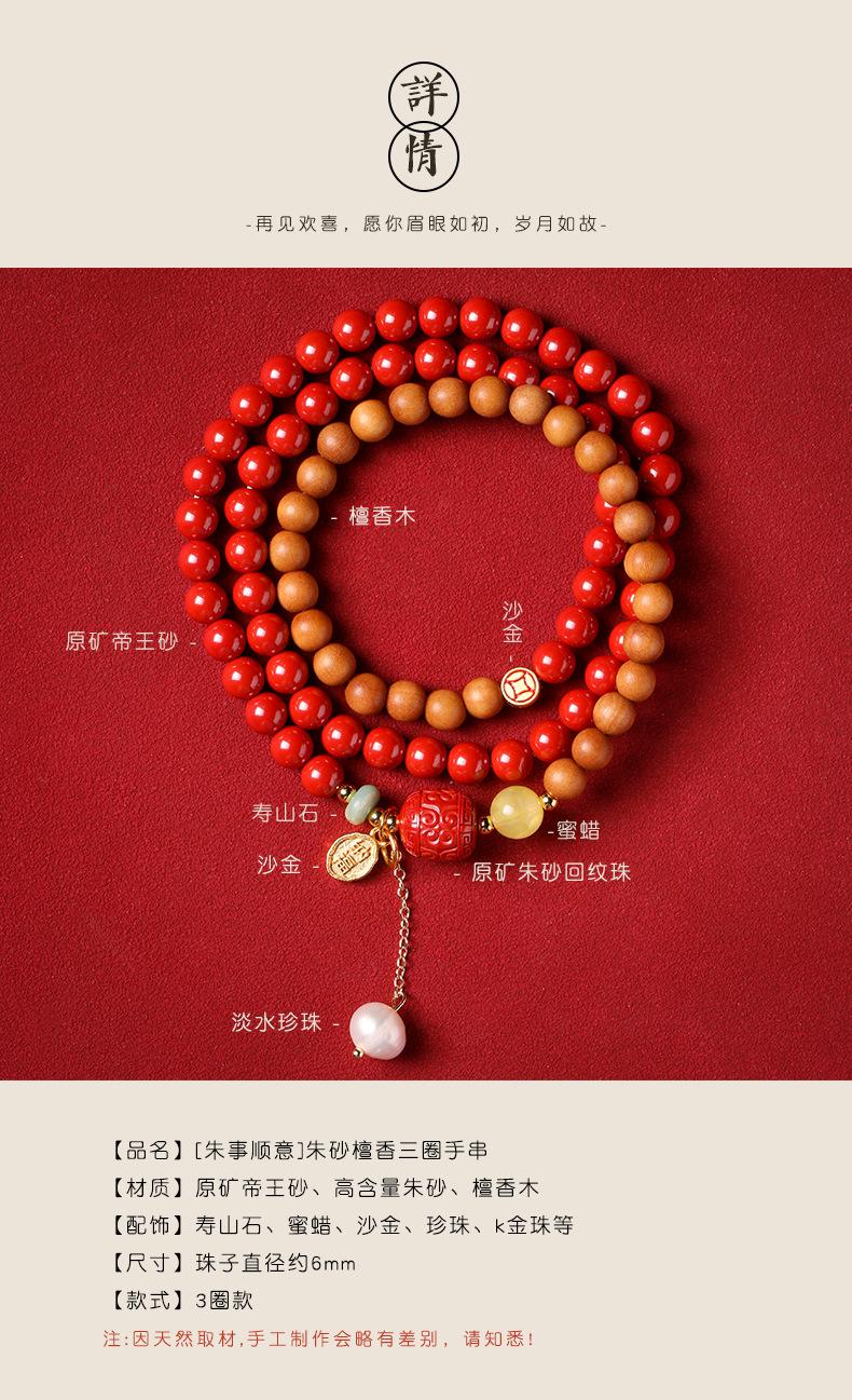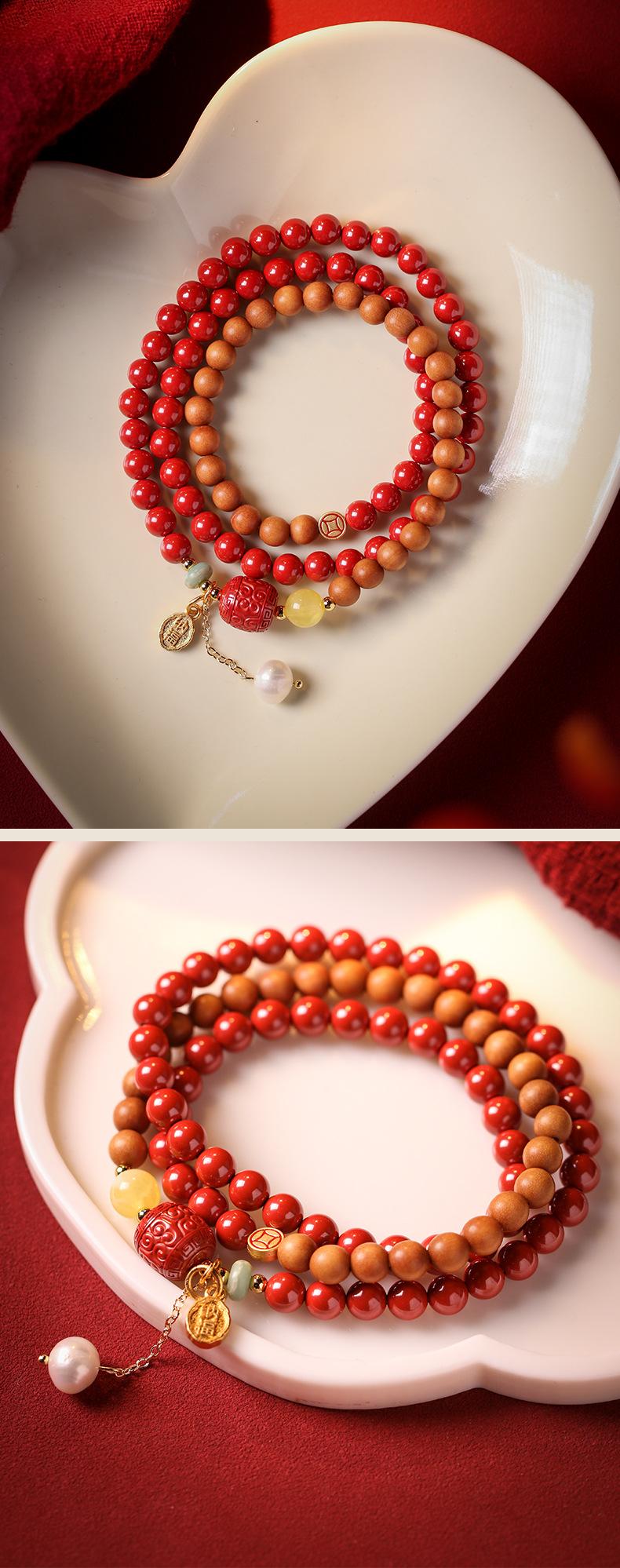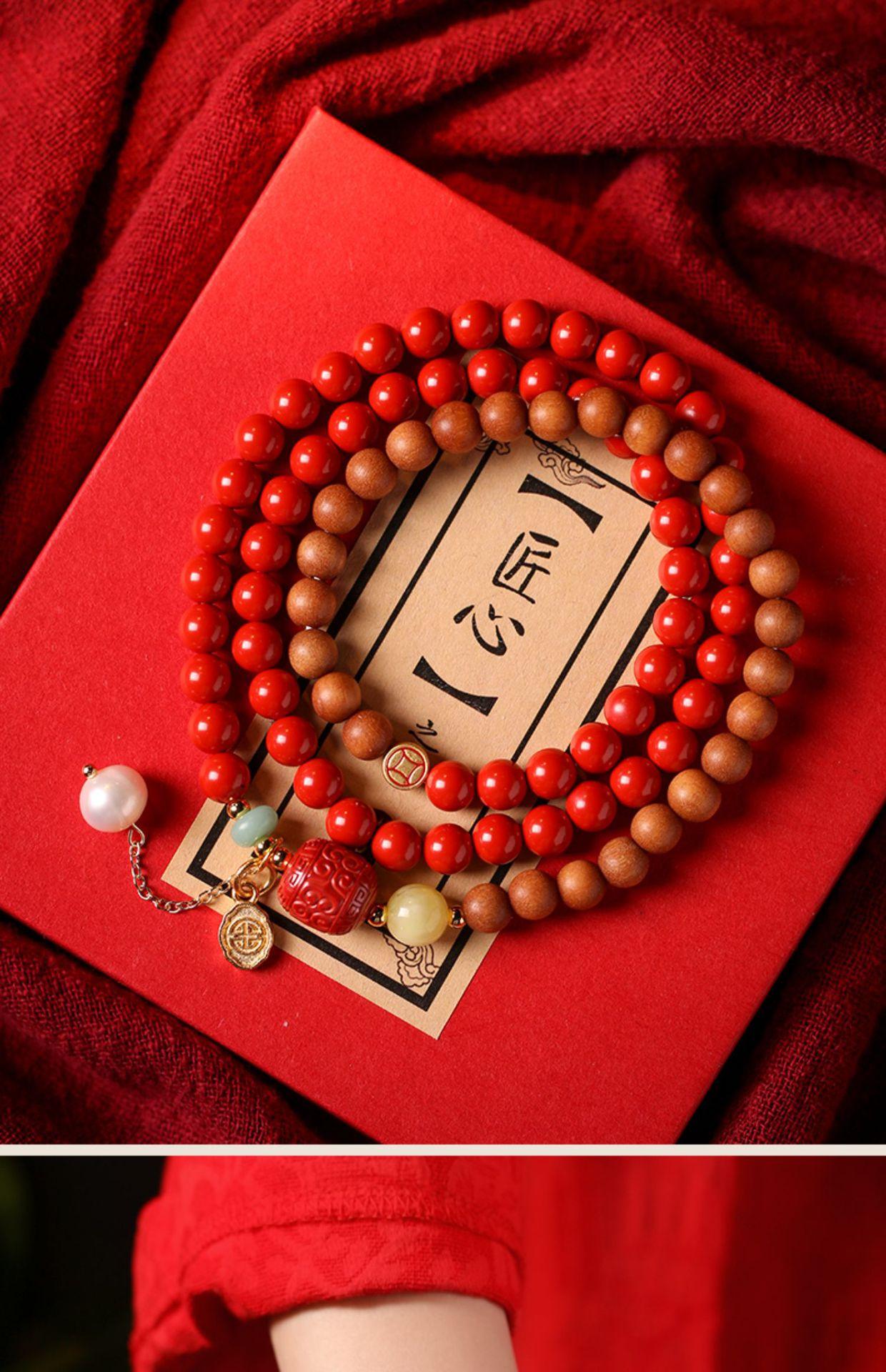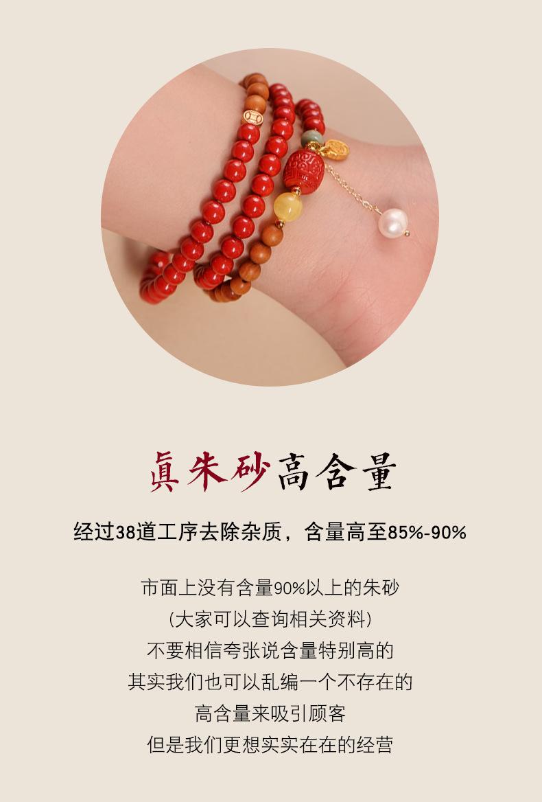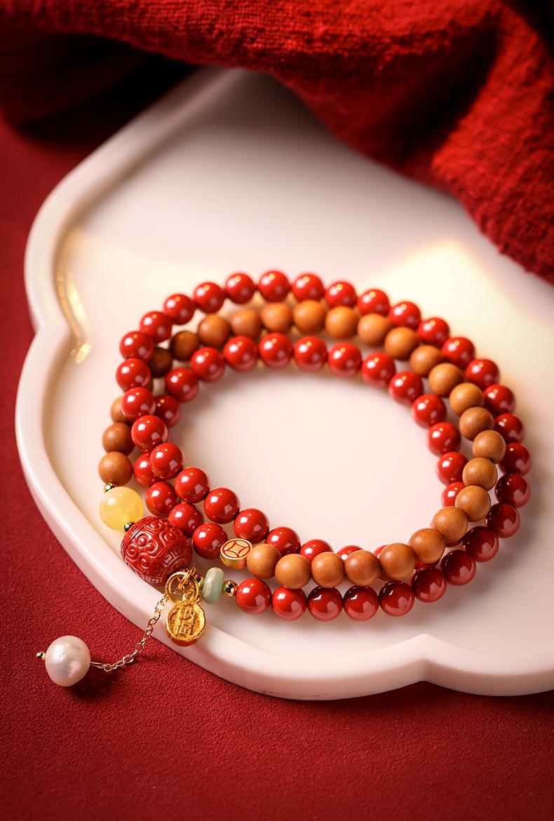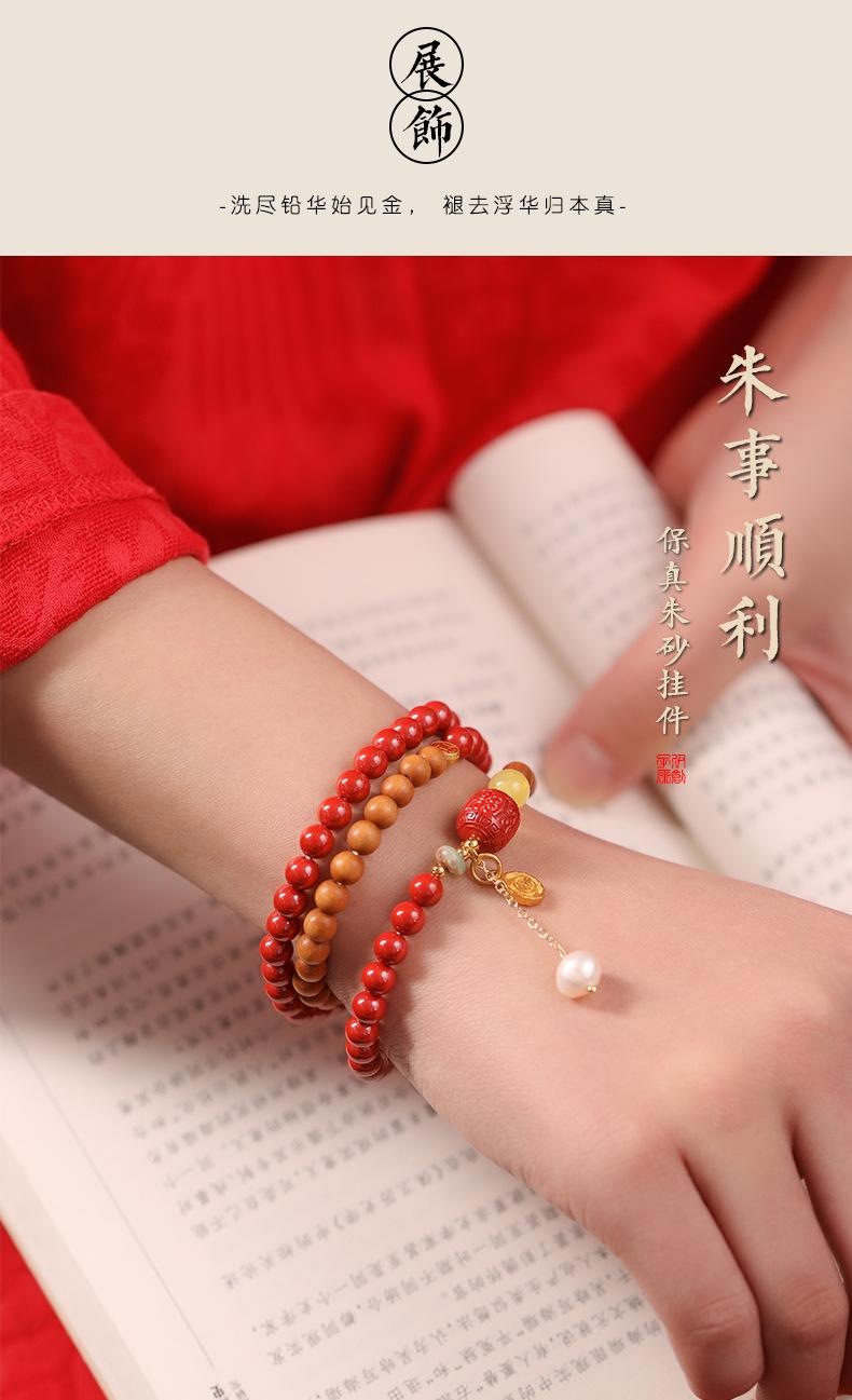 Pulseira de cinábrio natural Zhu Shi Shunyi pulseira de sândalo contas da sorte joia de várias voltas para mulheres