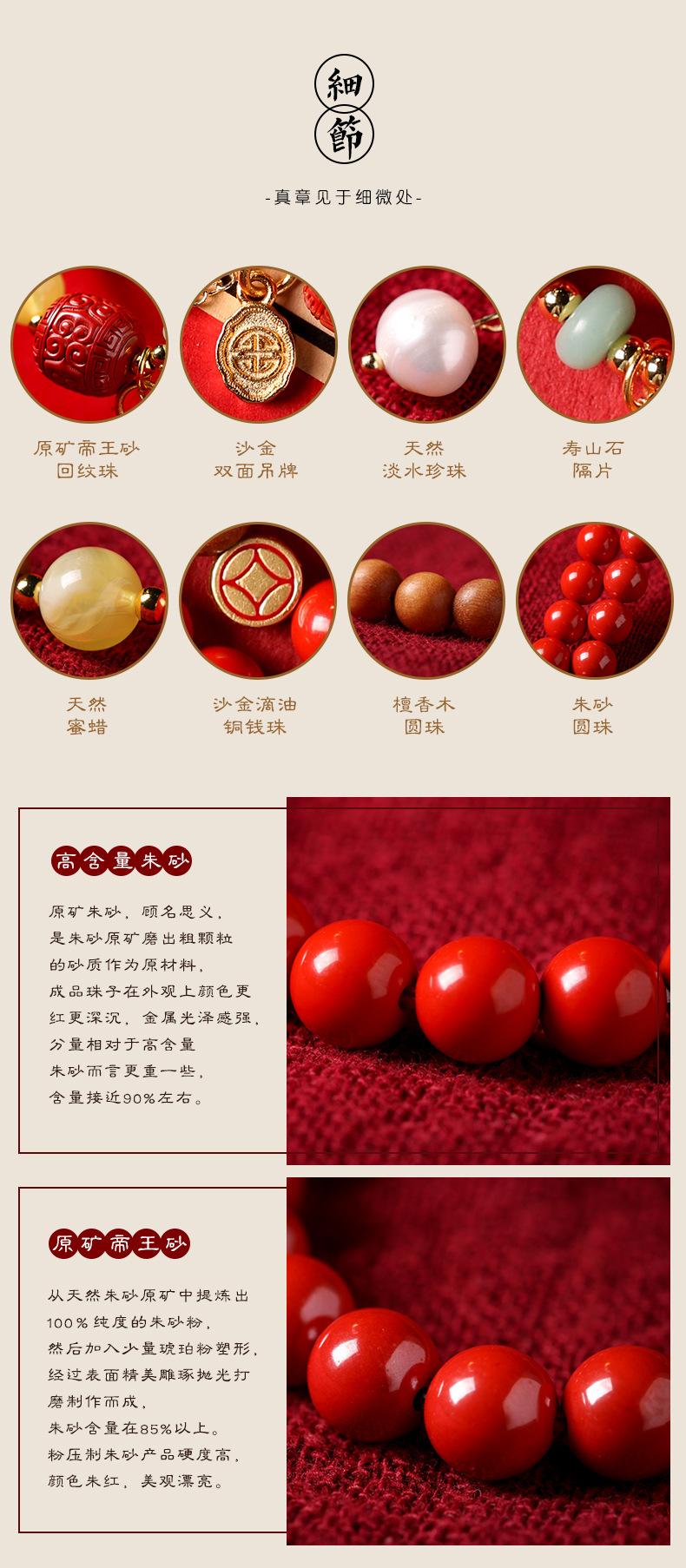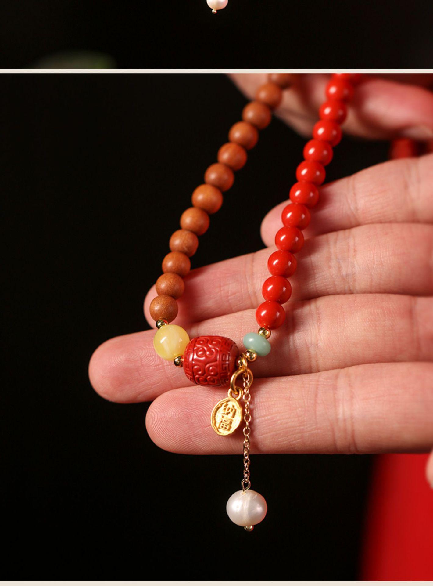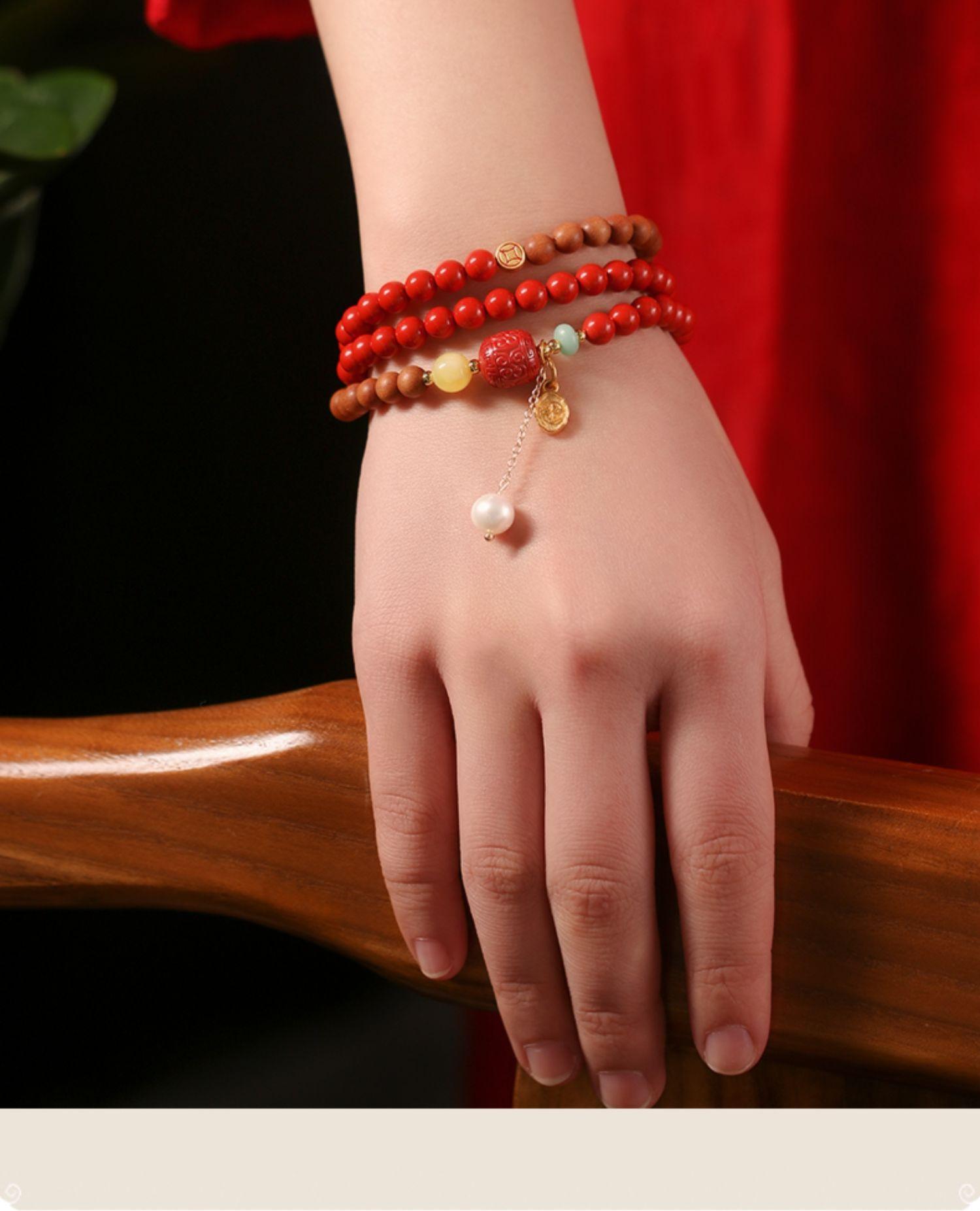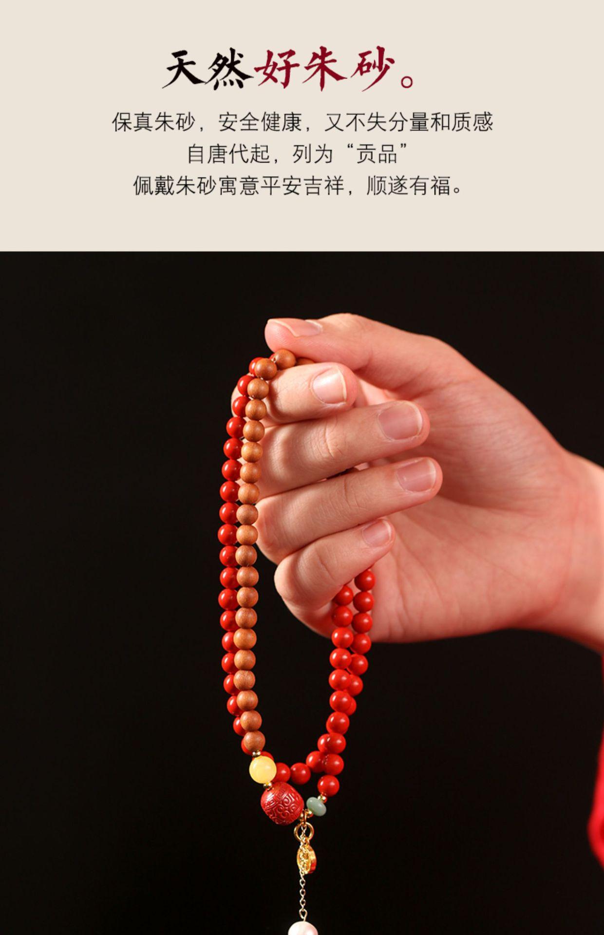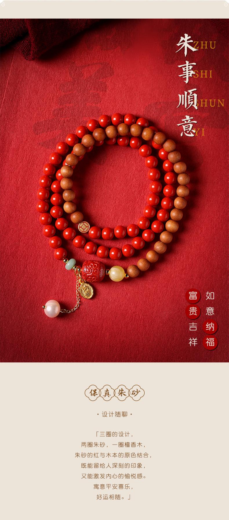 Pulseira de cinábrio natural Zhu Shi Shunyi pulseira de sândalo contas da sorte joia de várias voltas para mulheres