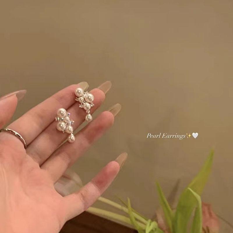 | 925 brincos de pérolas de zircônia e agulha de prata femininos borla ins luz luxo nicho temperamento brincos de alta qualidade joias de orelha atacado |