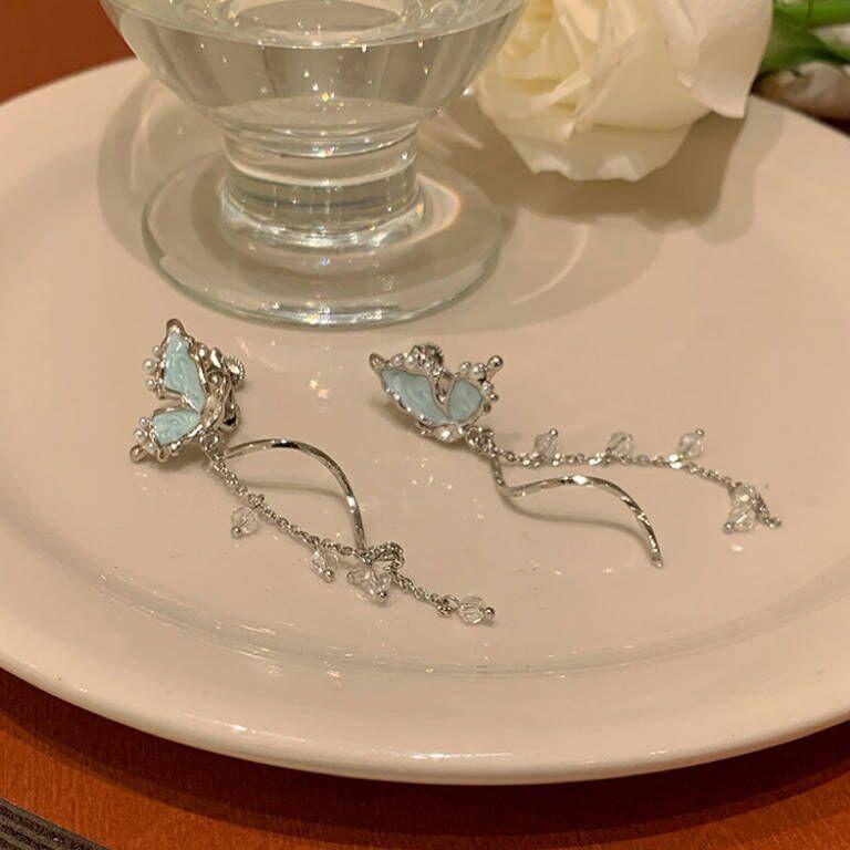 | Brincos de borboleta adequados para o verão, brincos de alta qualidade para mulheres, sem piercings, clipes de orelha, luxo leve, brincos de design de nicho |