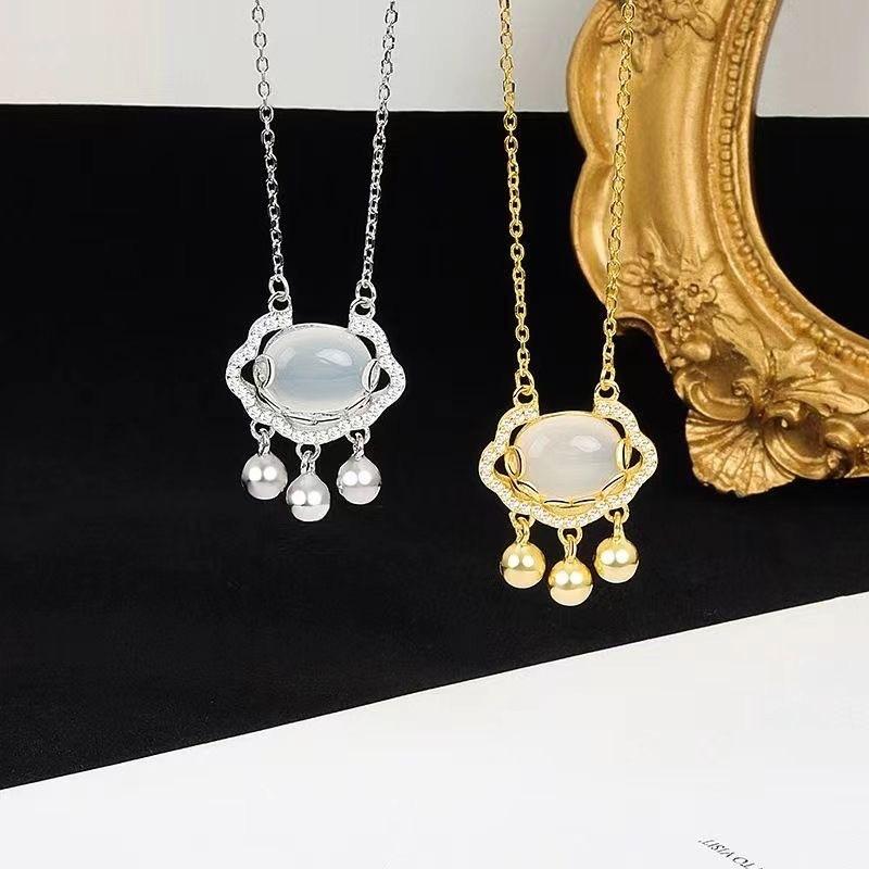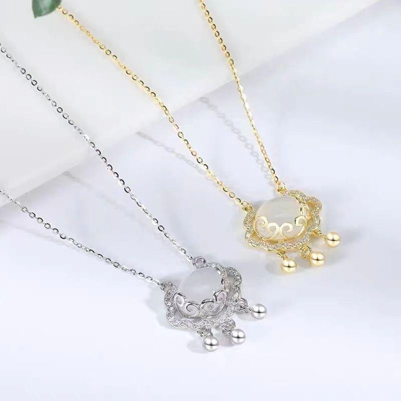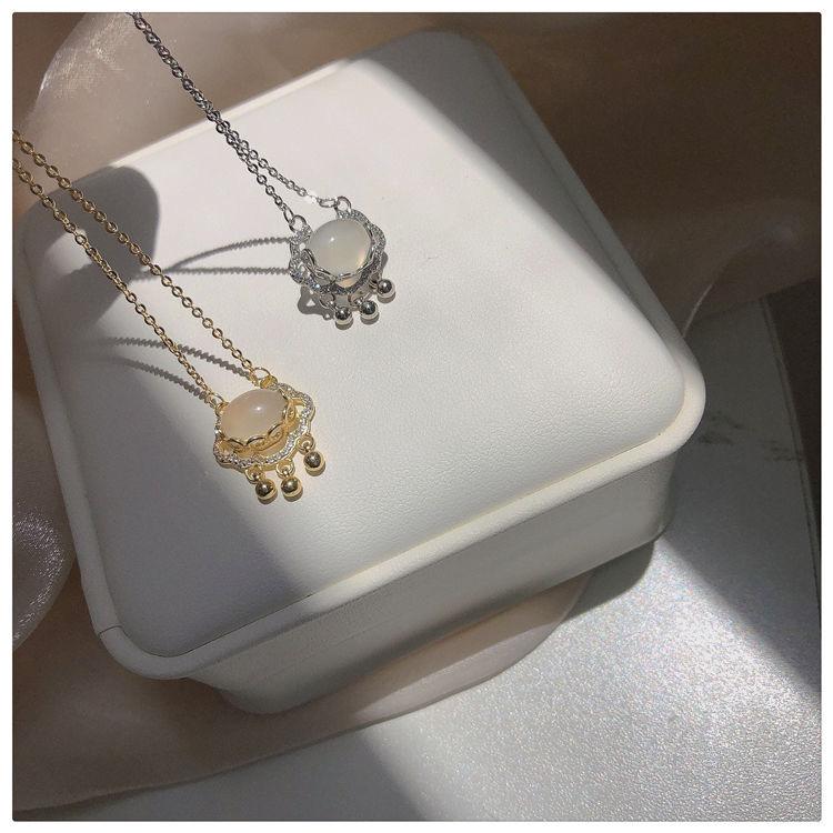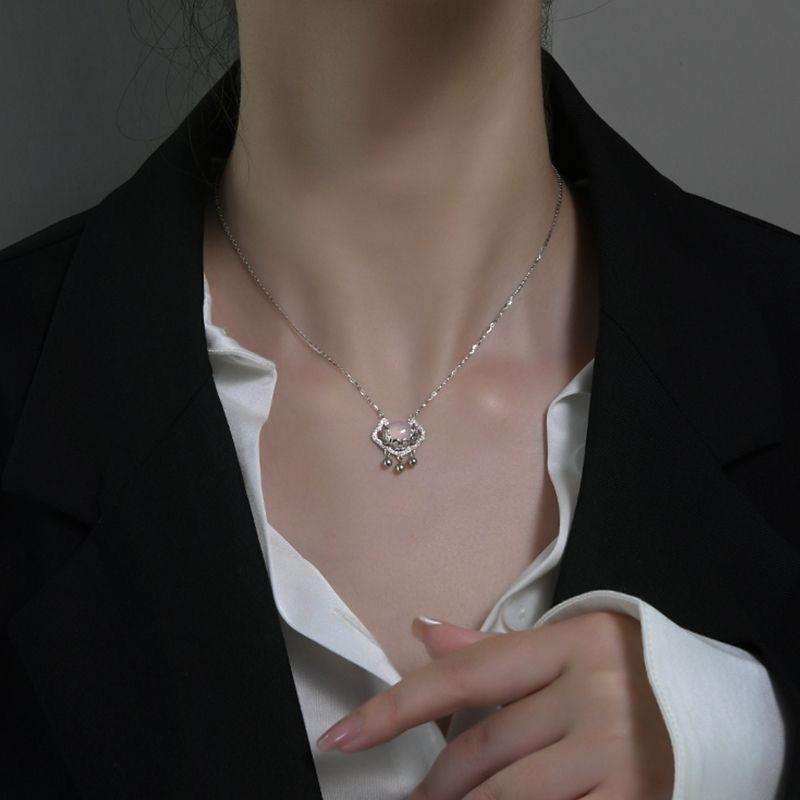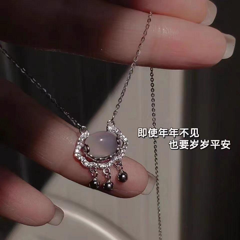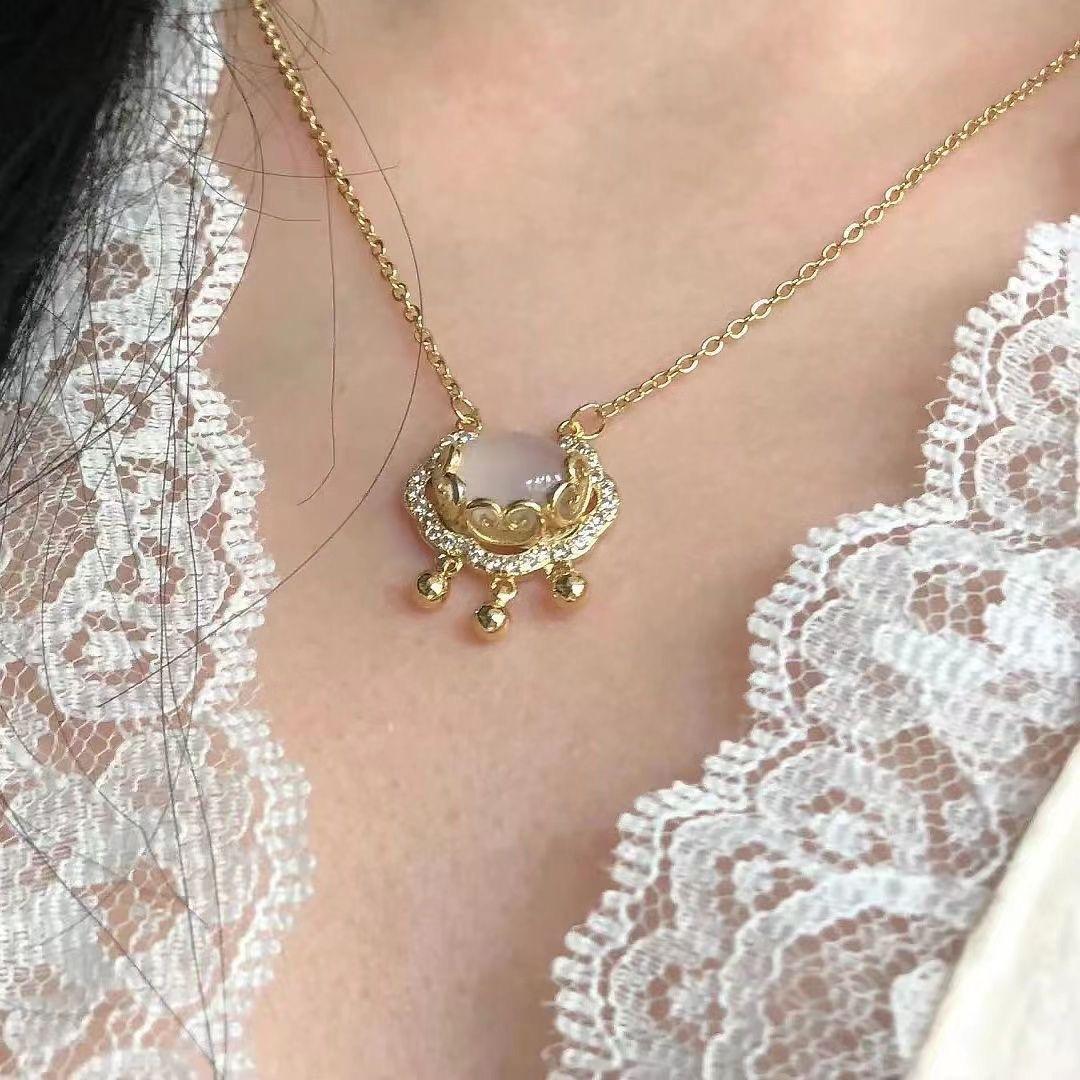 Novo Guofeng Xiangyun Lock Colar Ping Um Auspicioso High-end Luz Luxo Nicho Design Chinês Calcedônia Branca Cadeia Clavícula Feminina