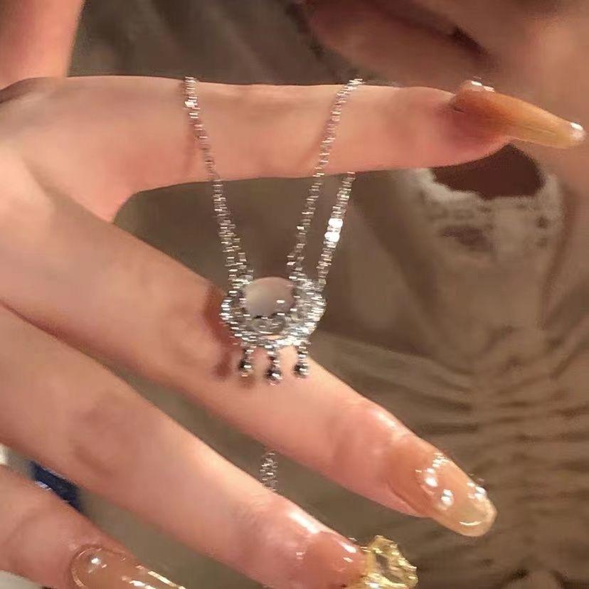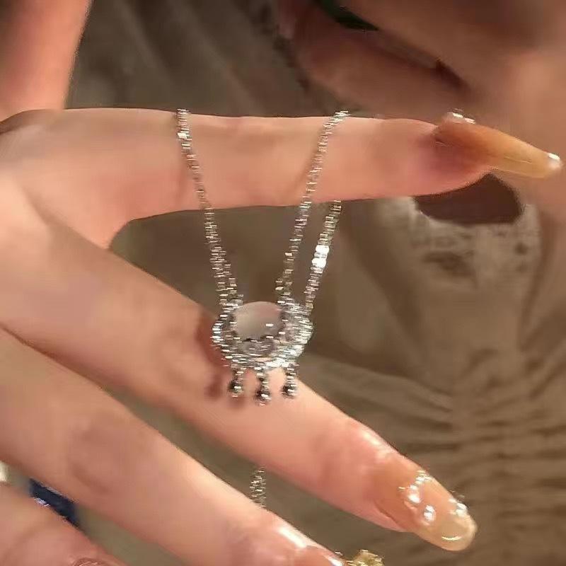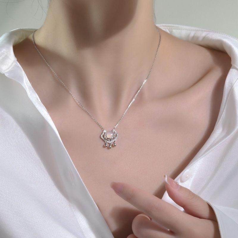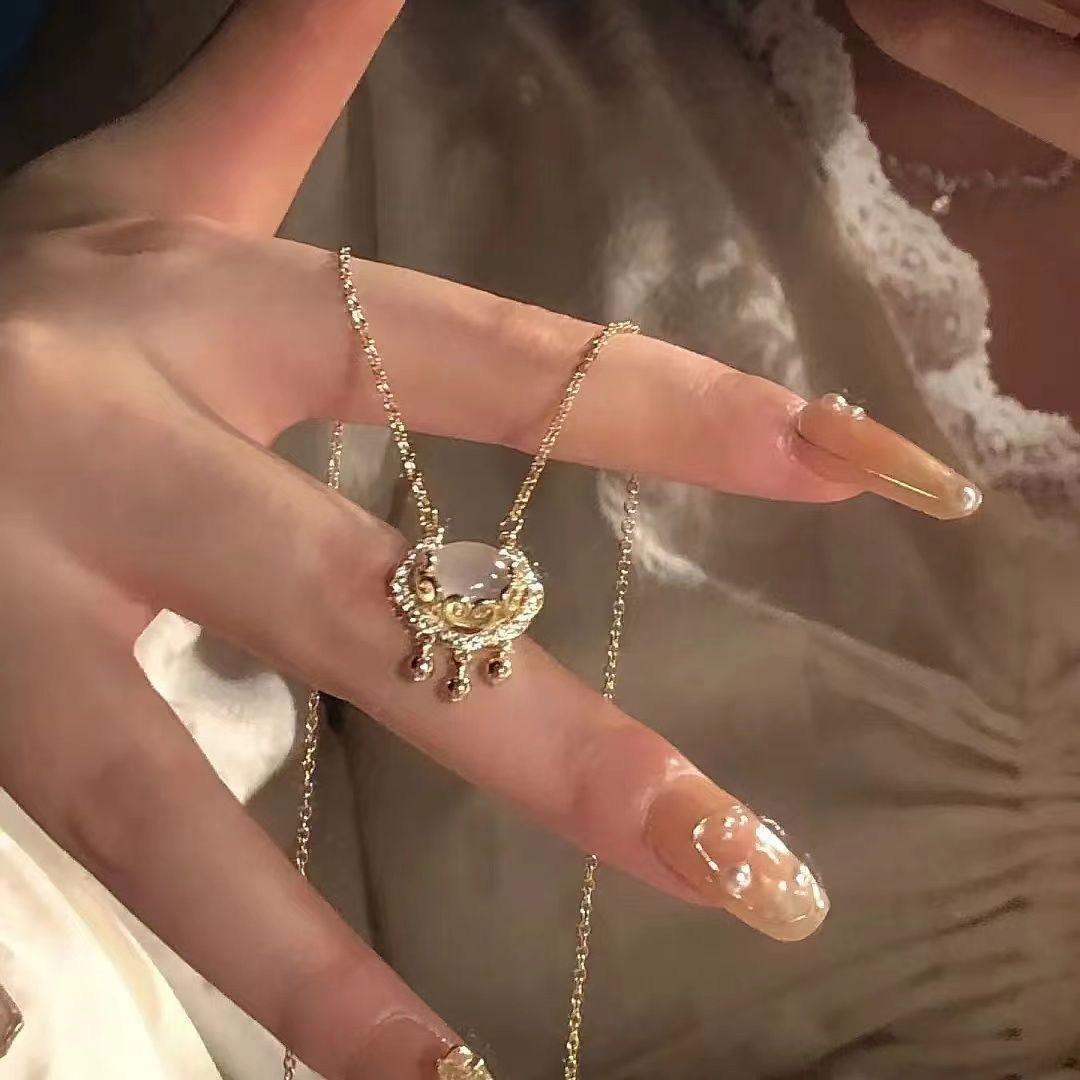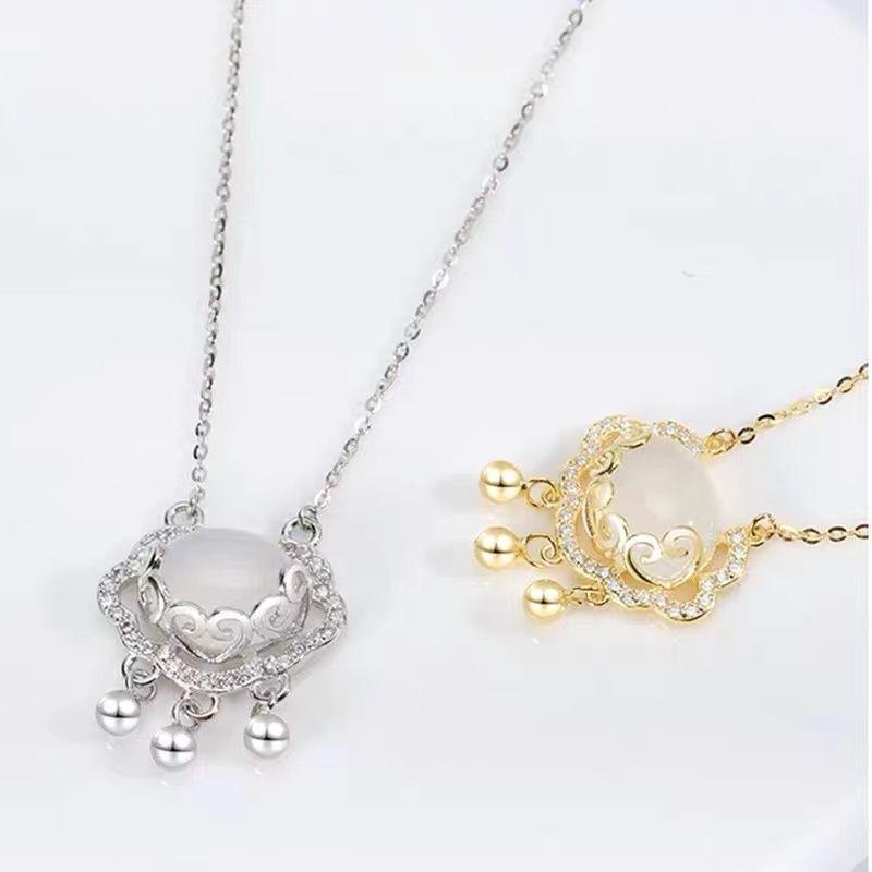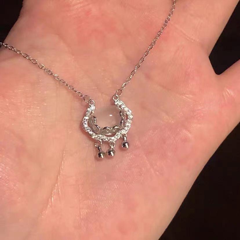 Novo Guofeng Xiangyun Lock Colar Ping Um Auspicioso High-end Luz Luxo Nicho Design Chinês Calcedônia Branca Cadeia Clavícula Feminina