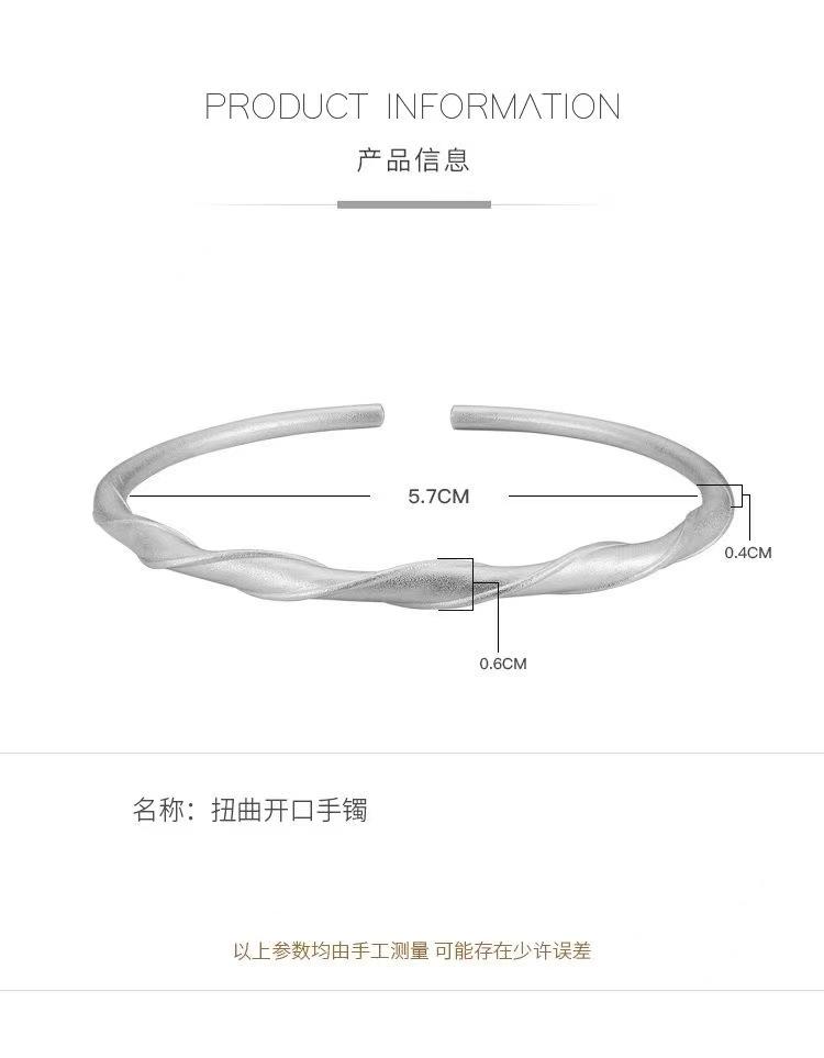 Pulseira Torcida Fina Mobius Antiga Aberta Banhada a Prata Vintage Pulseira Antiga Pulseira Sólida