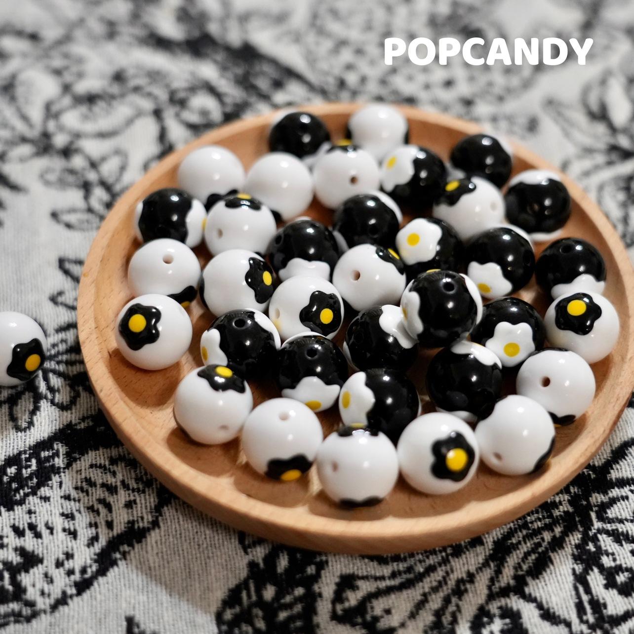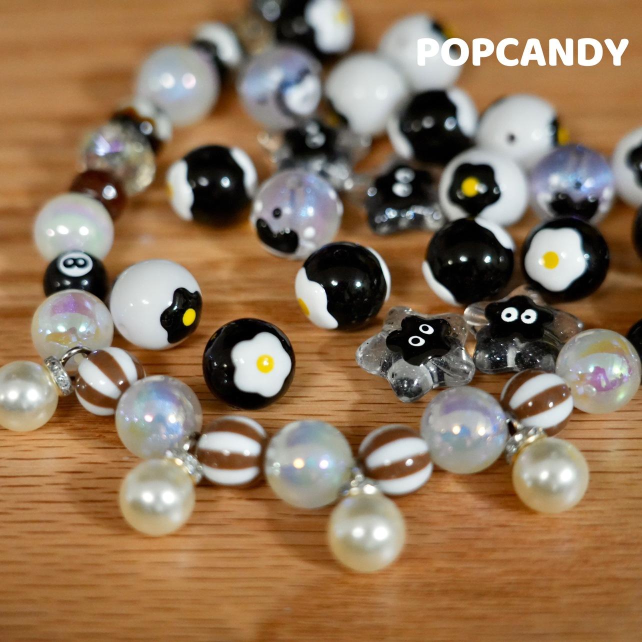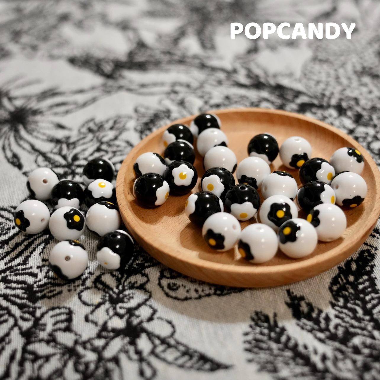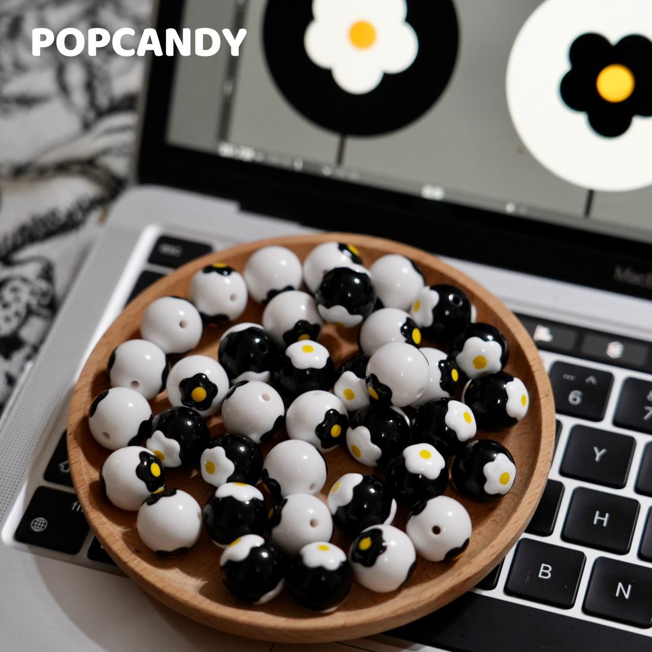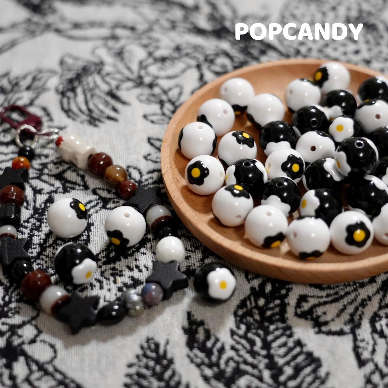 POPCANDY preto e branco flor all-match diário cadeia de telefone móvel DIY artesanal brincos frisados jóias contas de design simples