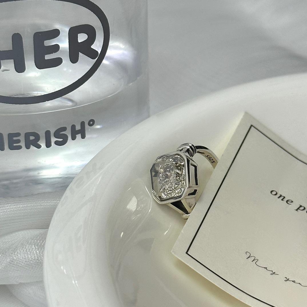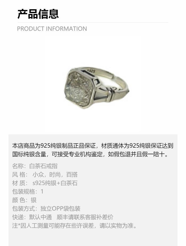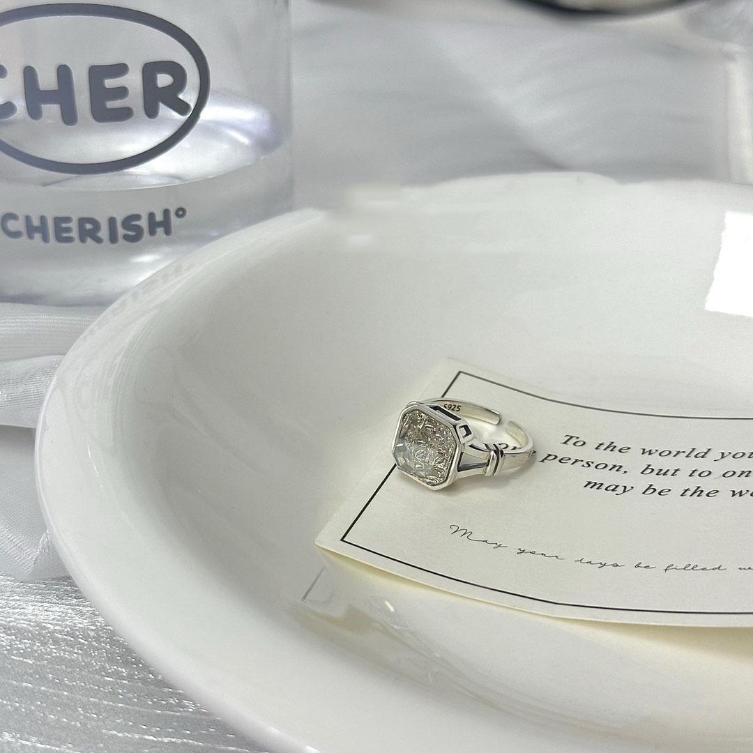 Anel de prata esterlina 925 com design de nicho feminino, não desbota, pedra de chá branca quadrada de alto sentido, anel aberto, joias transfronteiriças novas