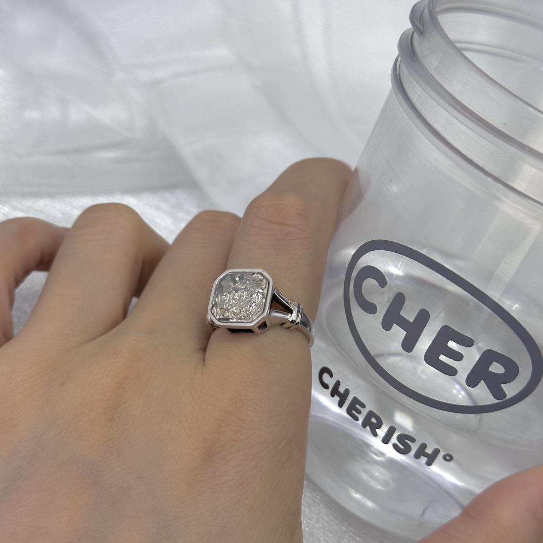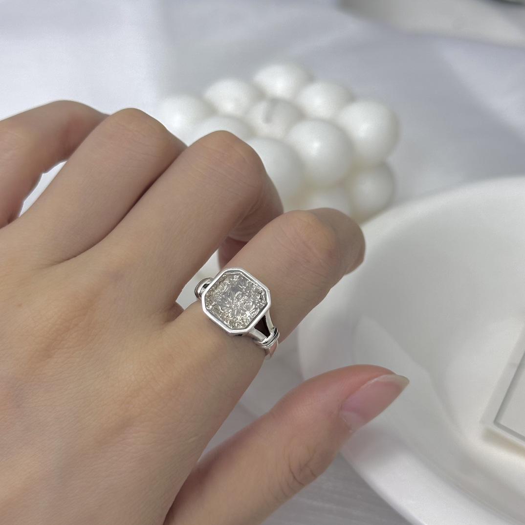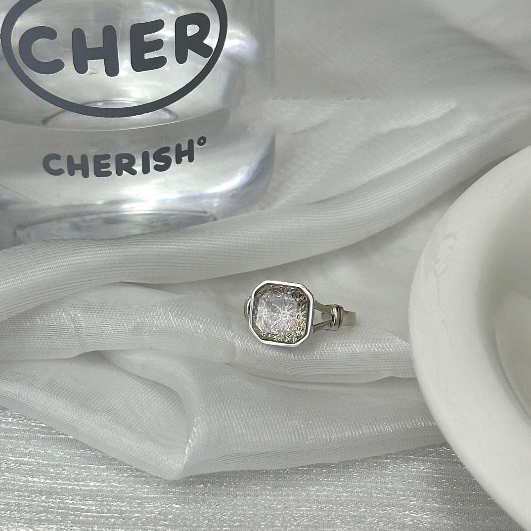 Anel de prata esterlina 925 com design de nicho feminino, não desbota, pedra de chá branca quadrada de alto sentido, anel aberto, joias transfronteiriças novas
