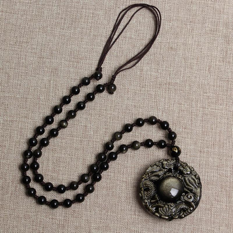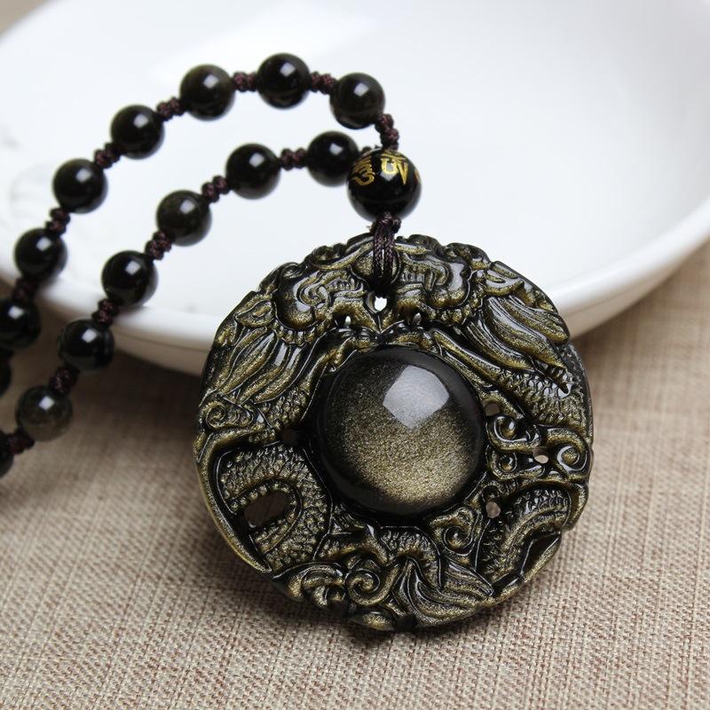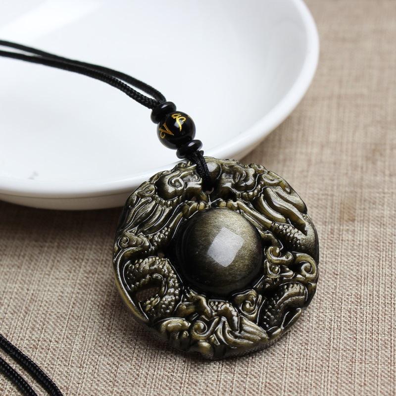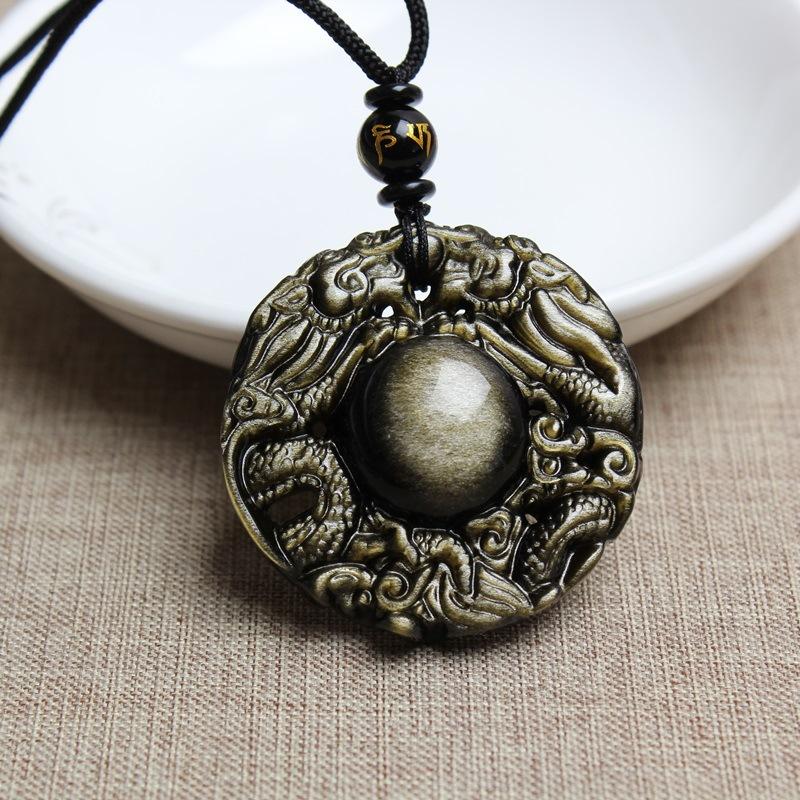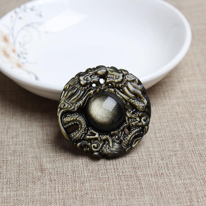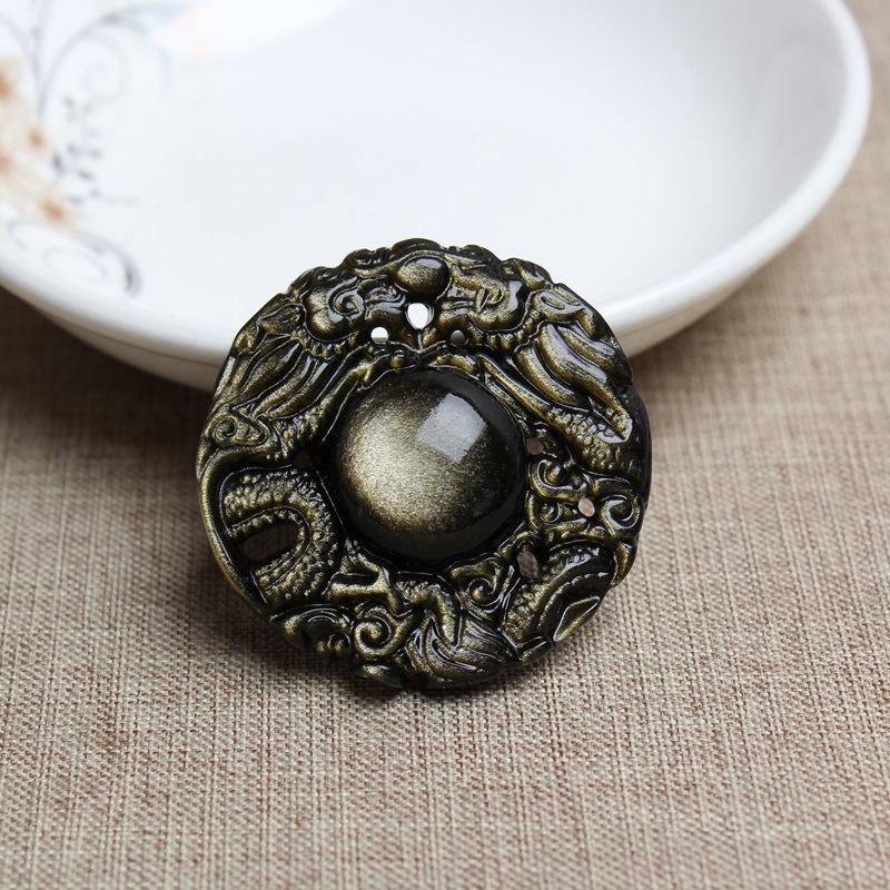 Compre Pingente de Obsidiana Natural Atacado Ouro Natural Obsidiana Dupla Face Esculpida Dupla Face Pingente de Dragon Ball no atacado no Joom.pro