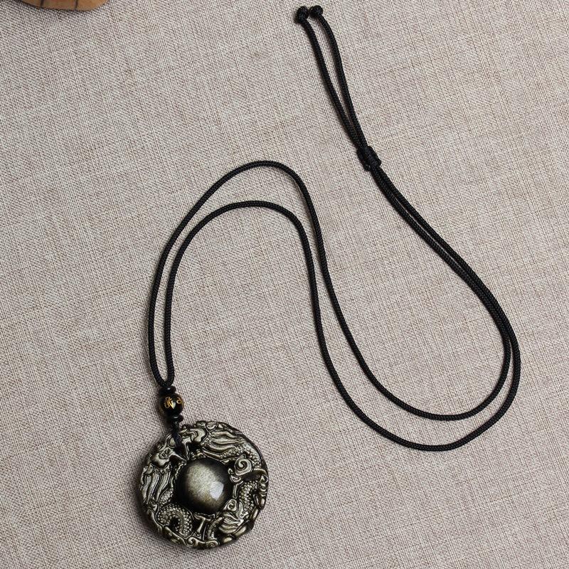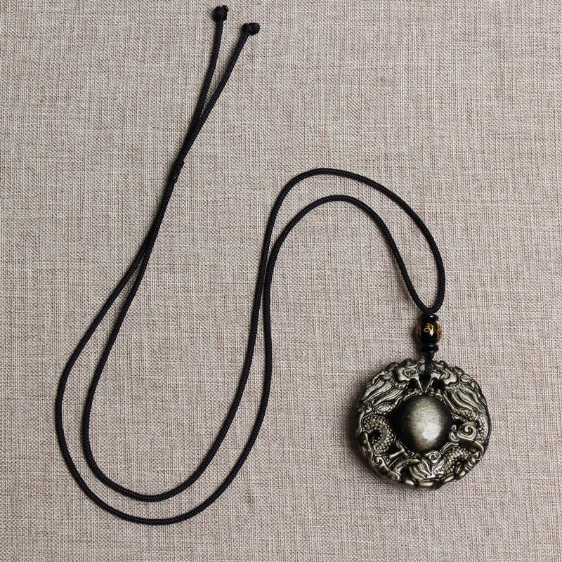 Pingente de Obsidiana Natural Atacado Ouro Natural Obsidiana Dupla Face Esculpida Dupla Face Pingente de Dragon Ball