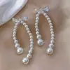 Brincos Longos de Pérola com Laço Estilo Novo 2025 Design Elegante de Celebridade da Internet Brincos para Mulheres