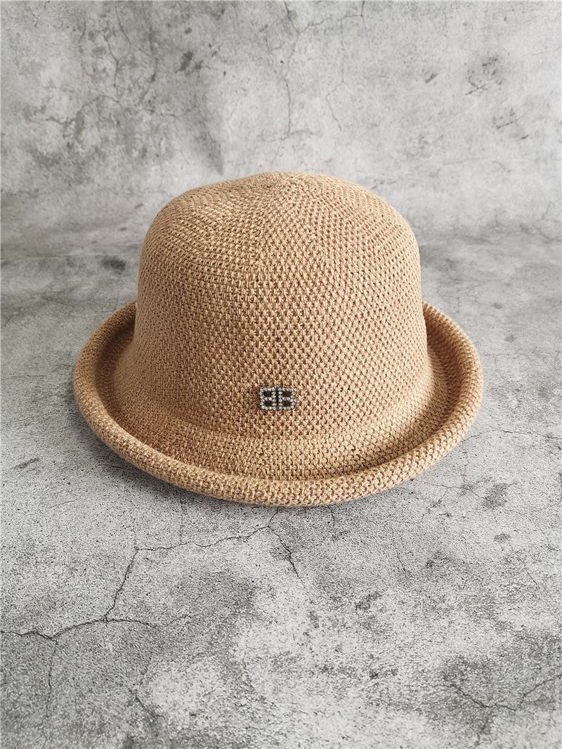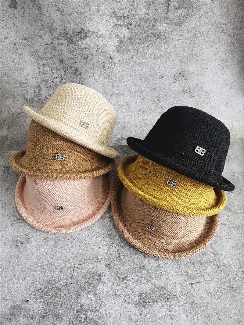 Chapéu Feminino Primavera e Outono Estilo Coreano Roll-up Pequeno Top Hat Casual Britânico Chapéu de Pescador para Viajar e Férias Praia Chapéu de Palha