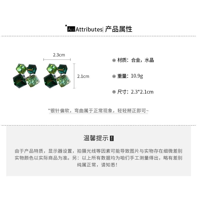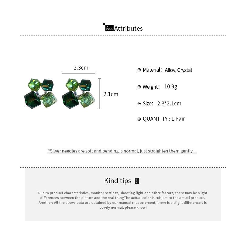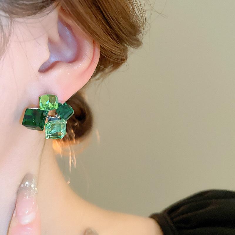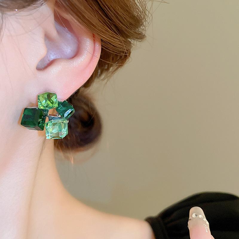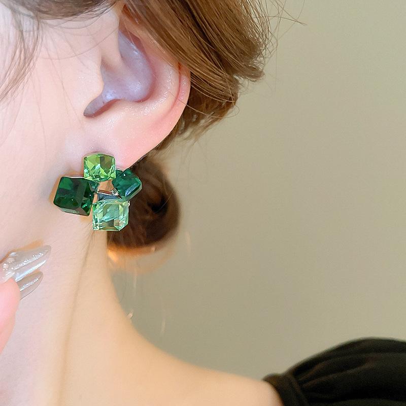 Brincos de cristal artificial quadrado com alfinete de prata, simples, contraste de cores de verão, brincos geométricos de alta qualidade para mulheres