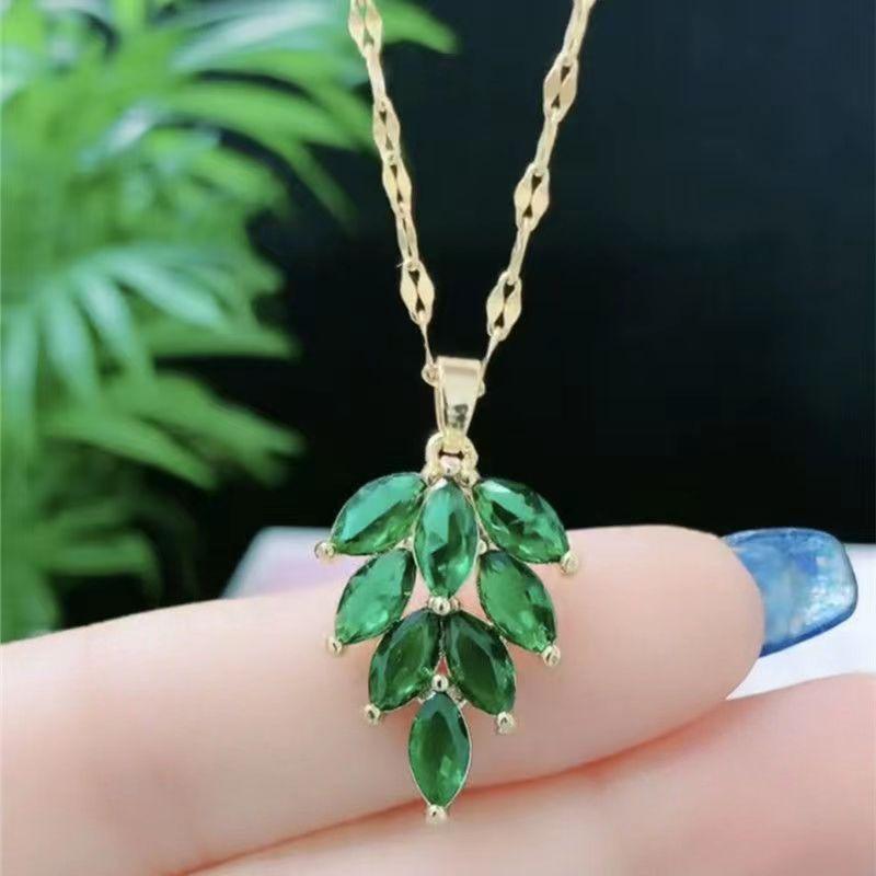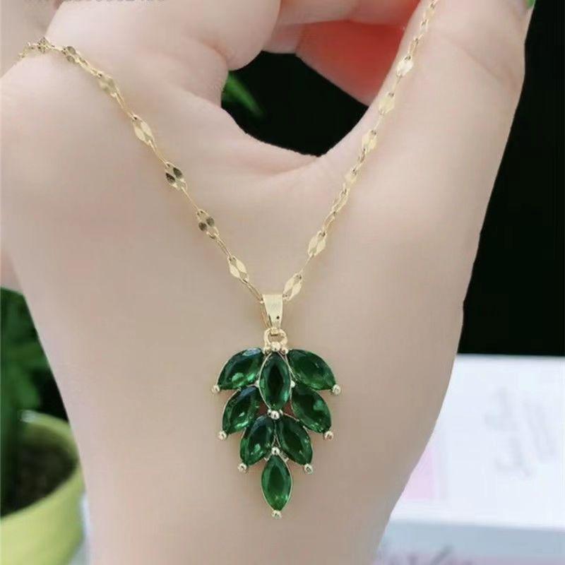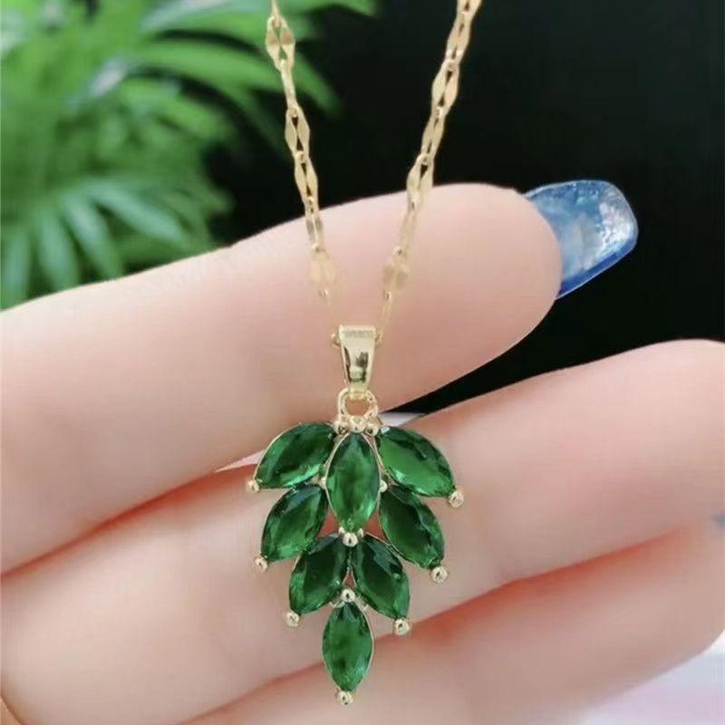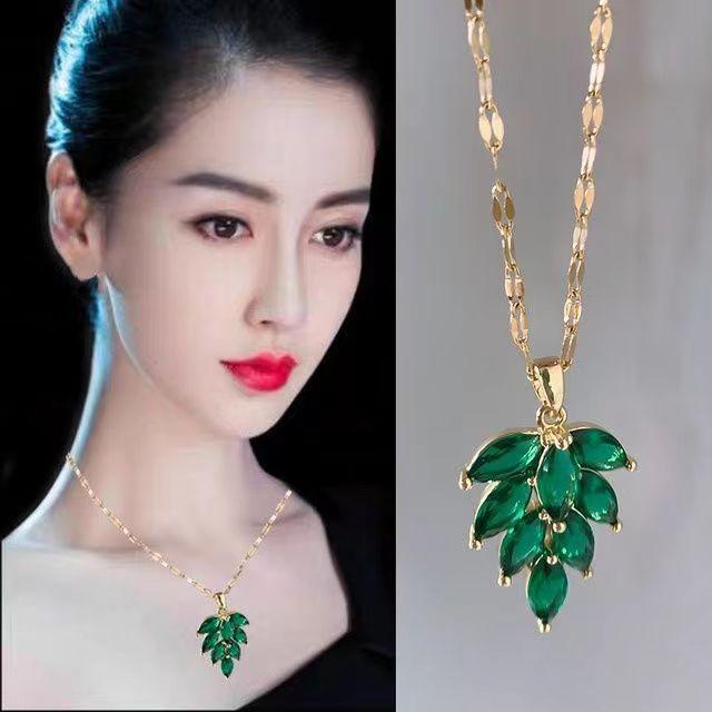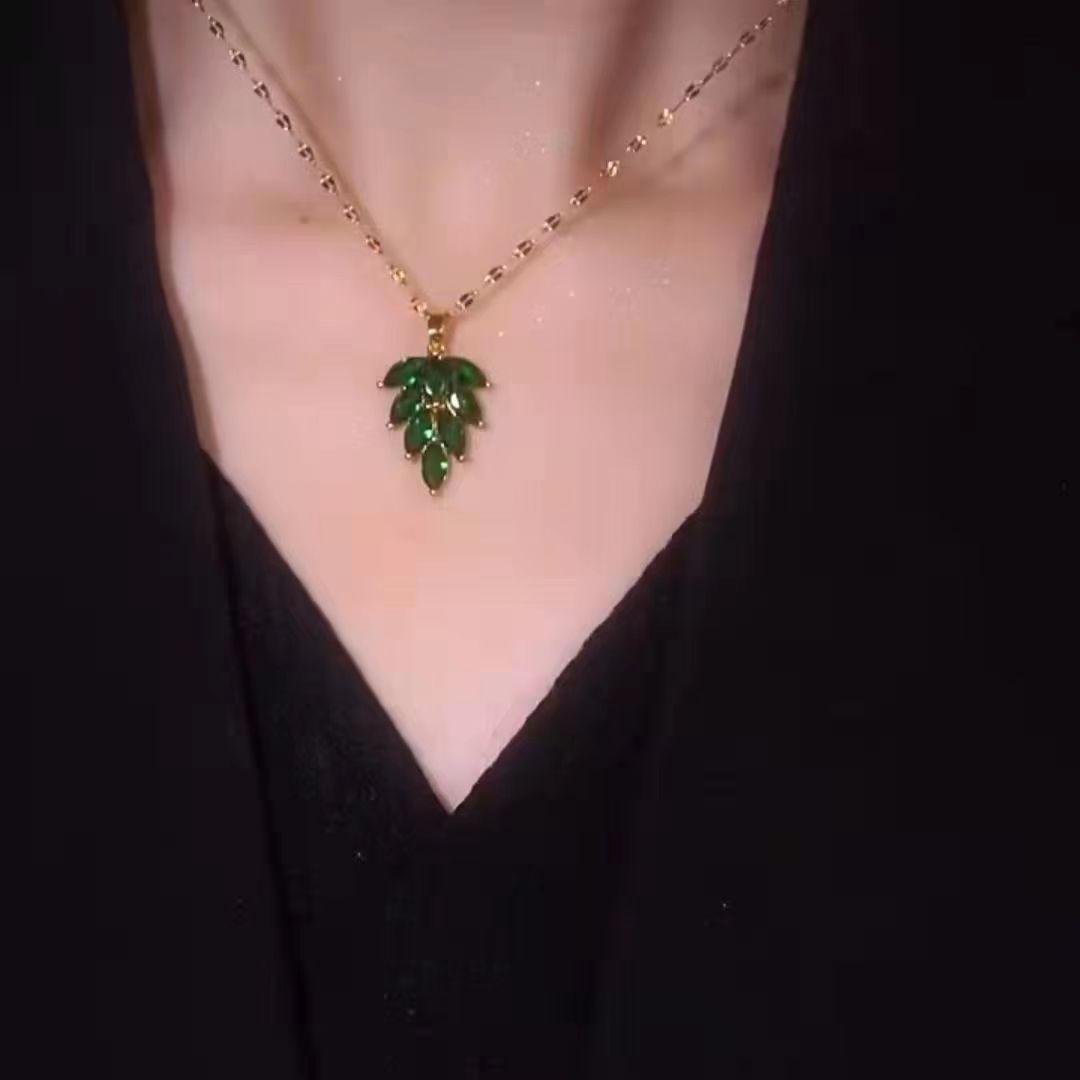 2023 Novo Estilo Ocidental Colar de Folhas Verdes Mulheres Alta Textura Folhas Luz Luxo Nicho Design Pingente Clavícula Cadeia Acessórios