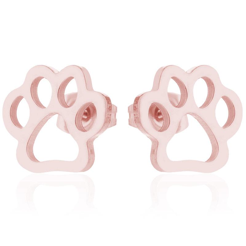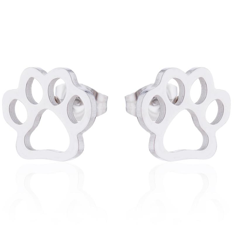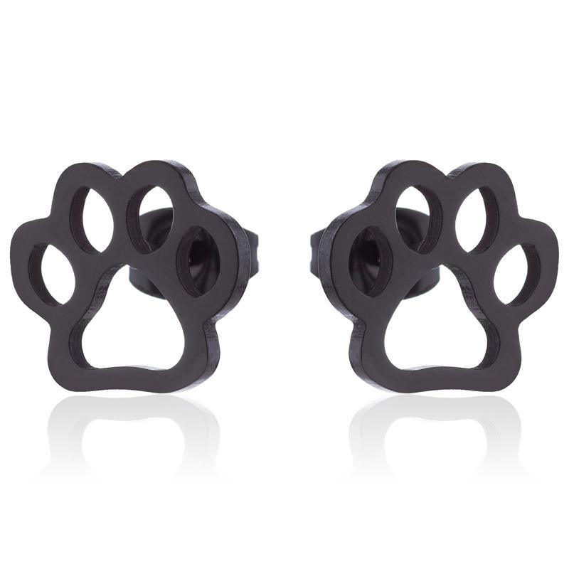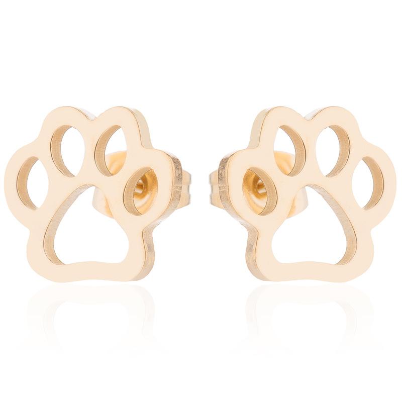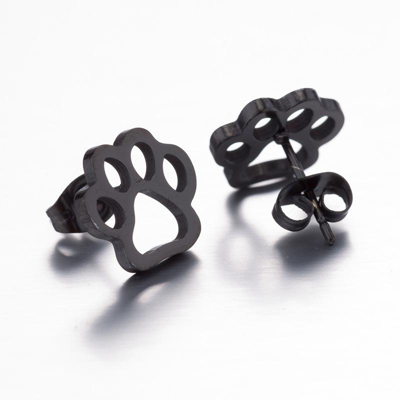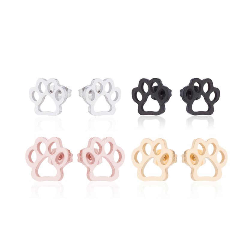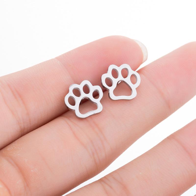 Japonês e coreano aço inoxidável personalidade novo oco urso pata orelha stud moda pequeno animal gato cão pegada pequeno orelha stud