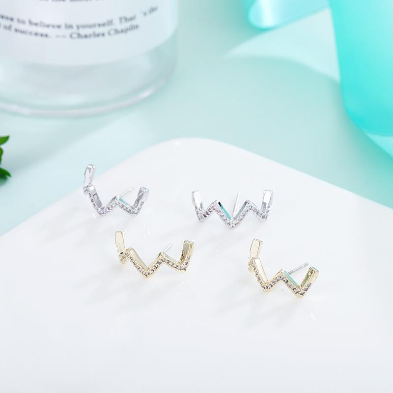 Compre Novos brincos de pino de prata 925 femininos zircônia diamante simples onda geométrica brincos orelha jóias atacado no atacado no Joom.pro