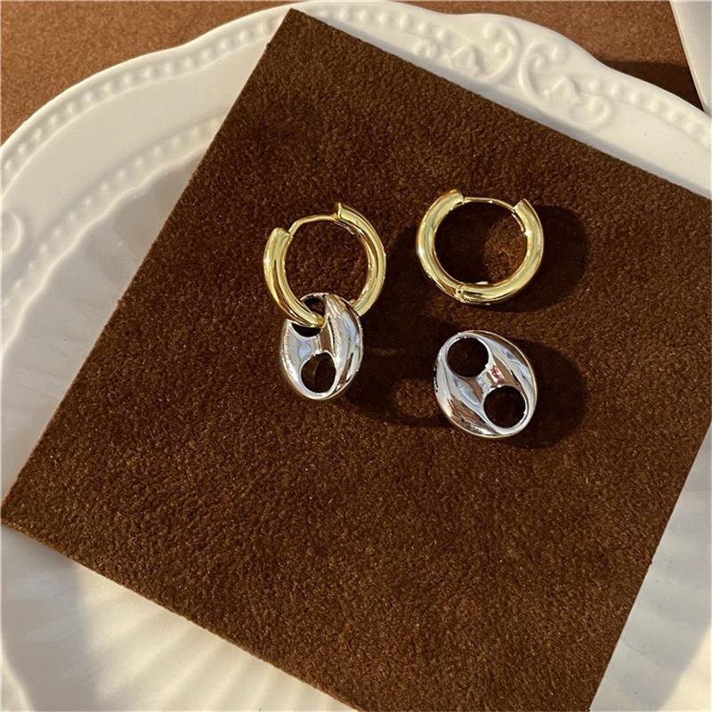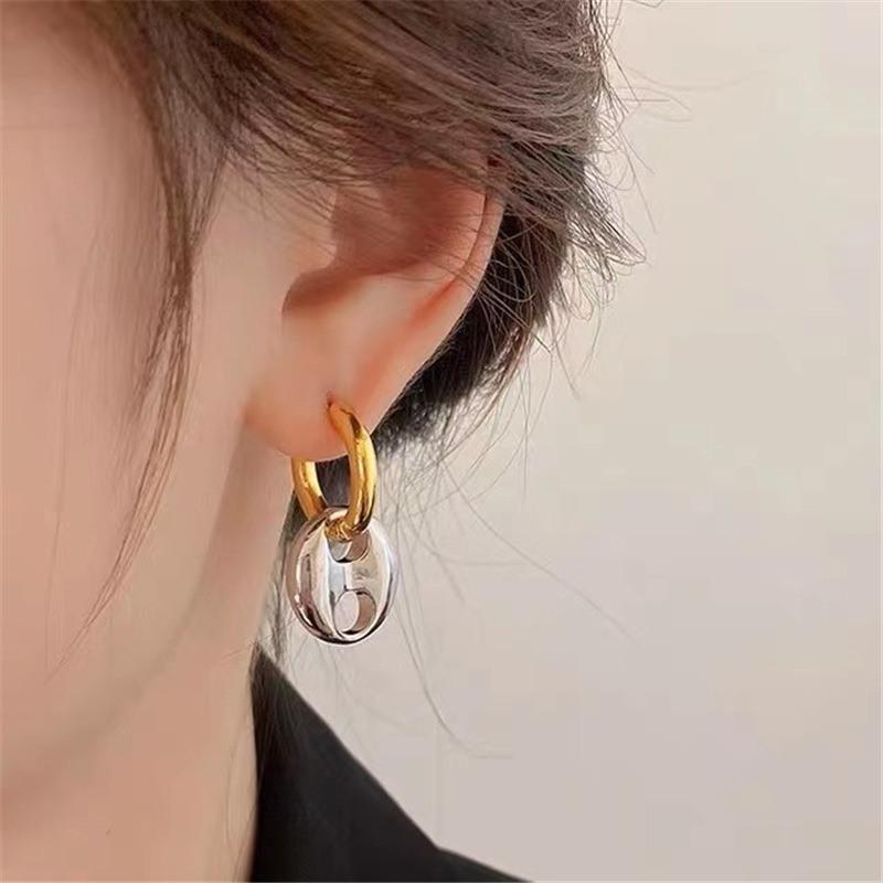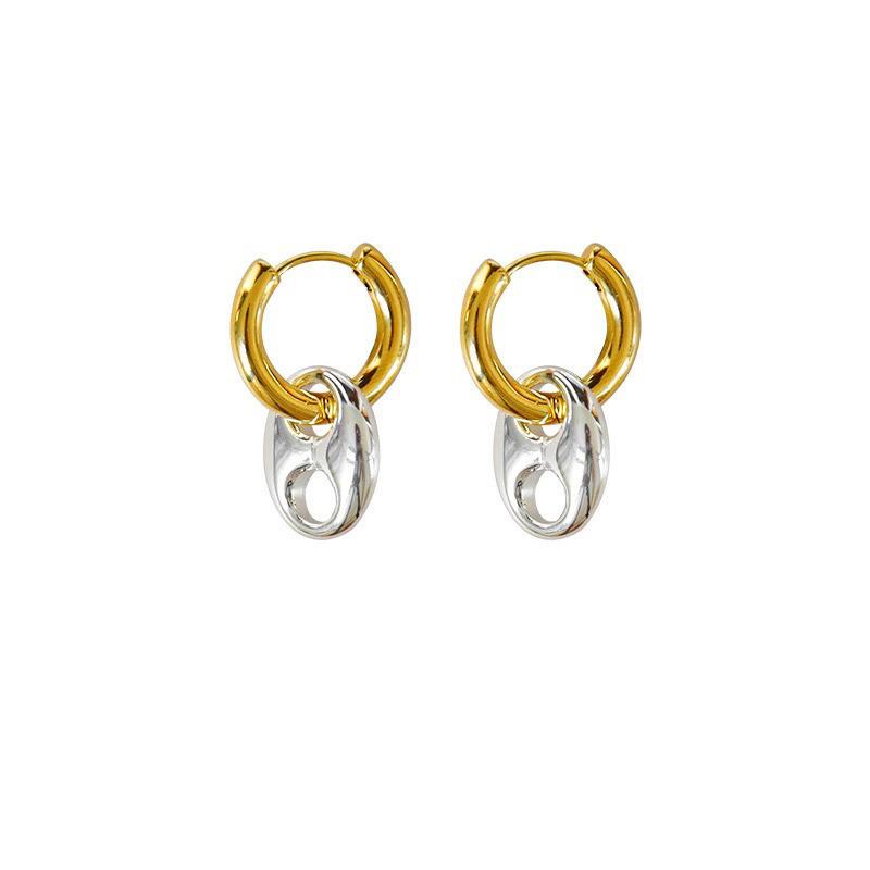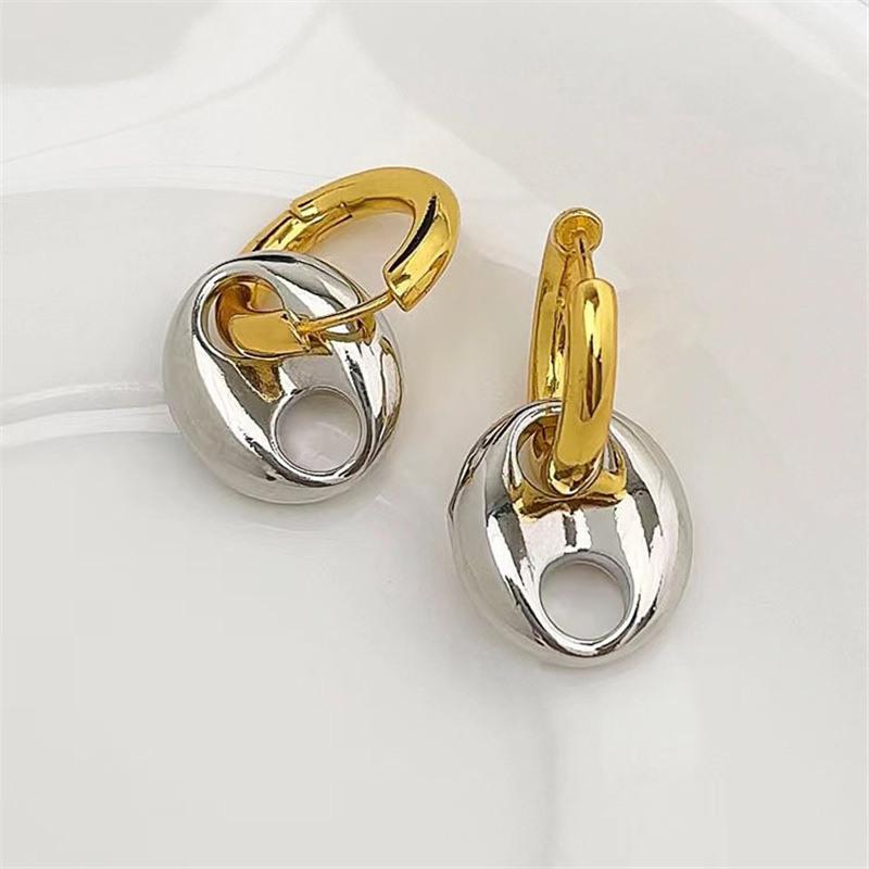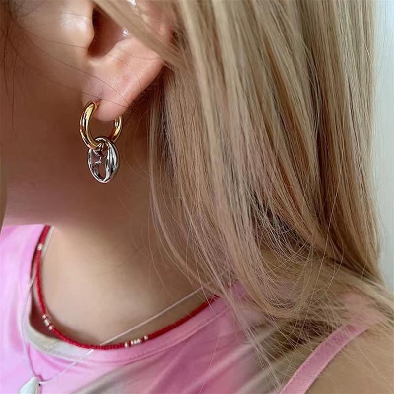 Moda europeia e americana temperamento ouro e prata costura de duas cores brincos redondos brincos nicho design brincos franceses atacado feminino