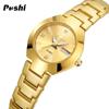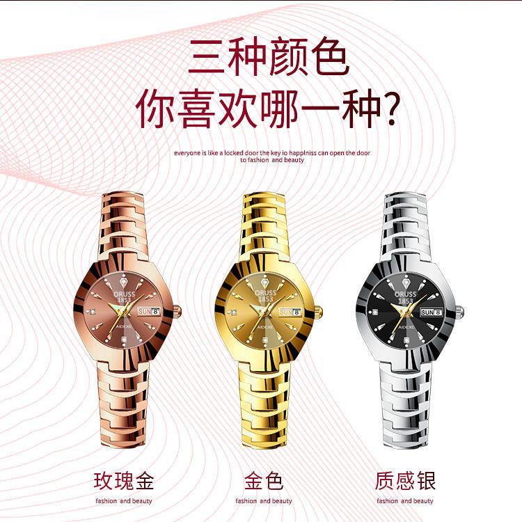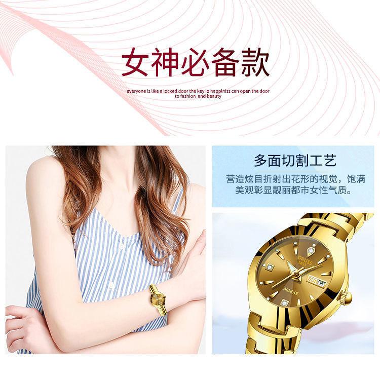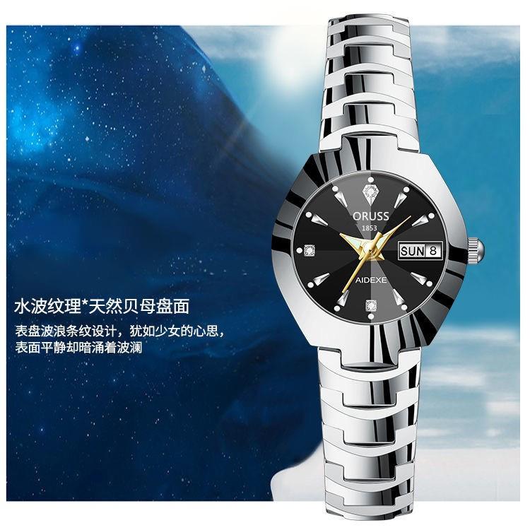 Relógio feminino fashion à prova d'água luminoso temperamento simples aço cinto calendário duplo relógio de quartzo feminino uma geração de cabelo