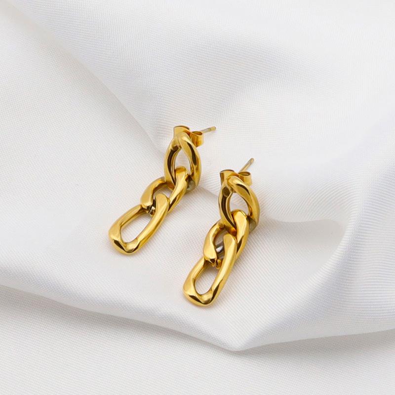 Brincos de corrente grossa exagerados retrô europeus e americanos, brincos femininos de personalidade geométrica, colar de aço titânio, brincos de aço inoxidável de ouro 18K¥ 3,8Comprar agora