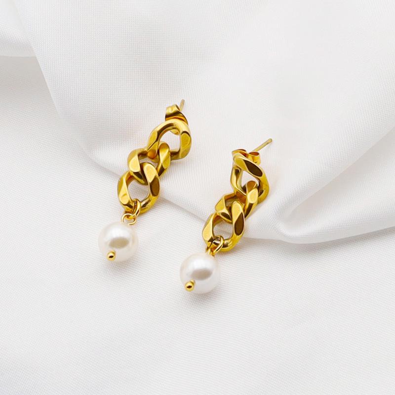 Brincos de aço de titânio de celebridades da Internet europeias e americanas, brincos longos de corrente cubana, brincos de pérolas, brincos de aço inoxidável de ouro 18k para mulheres¥ 4,8Comprar agora