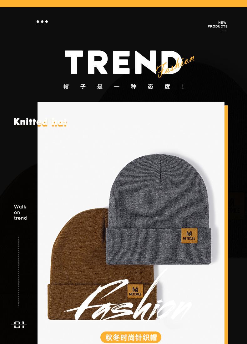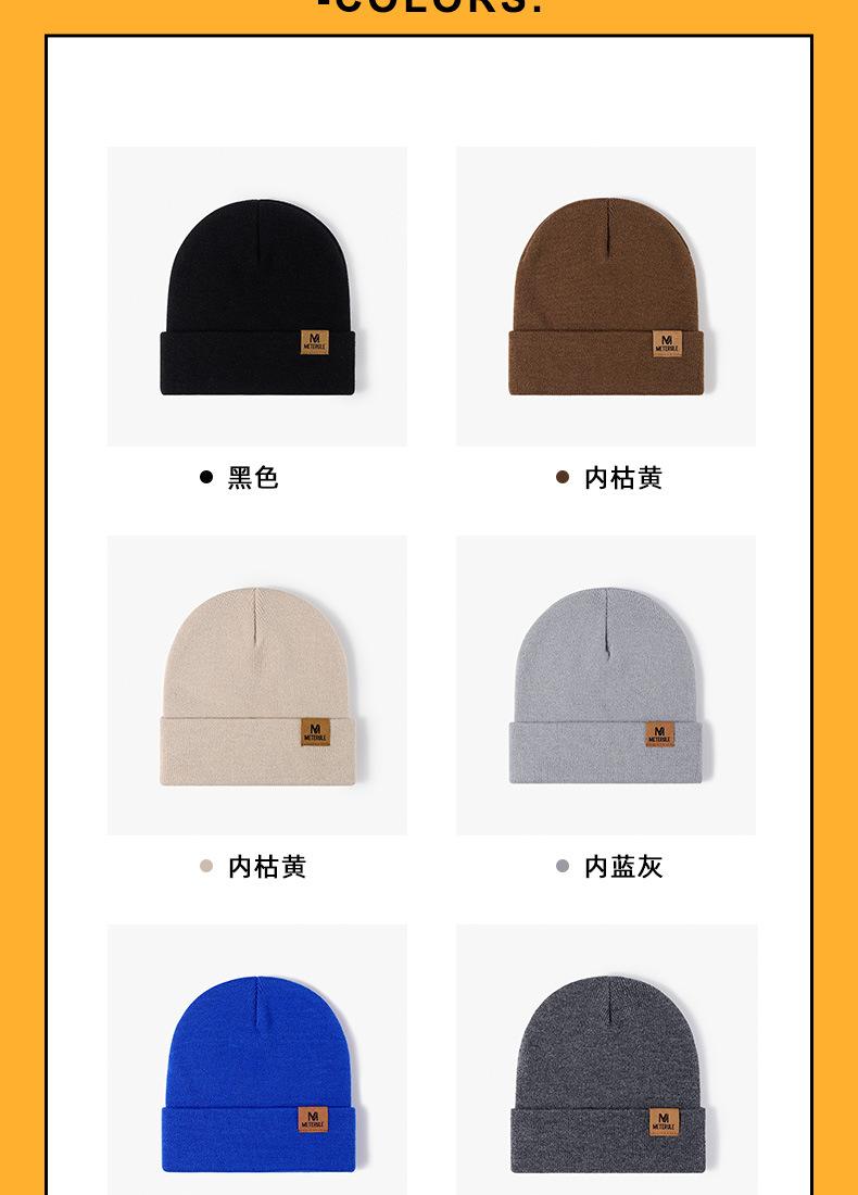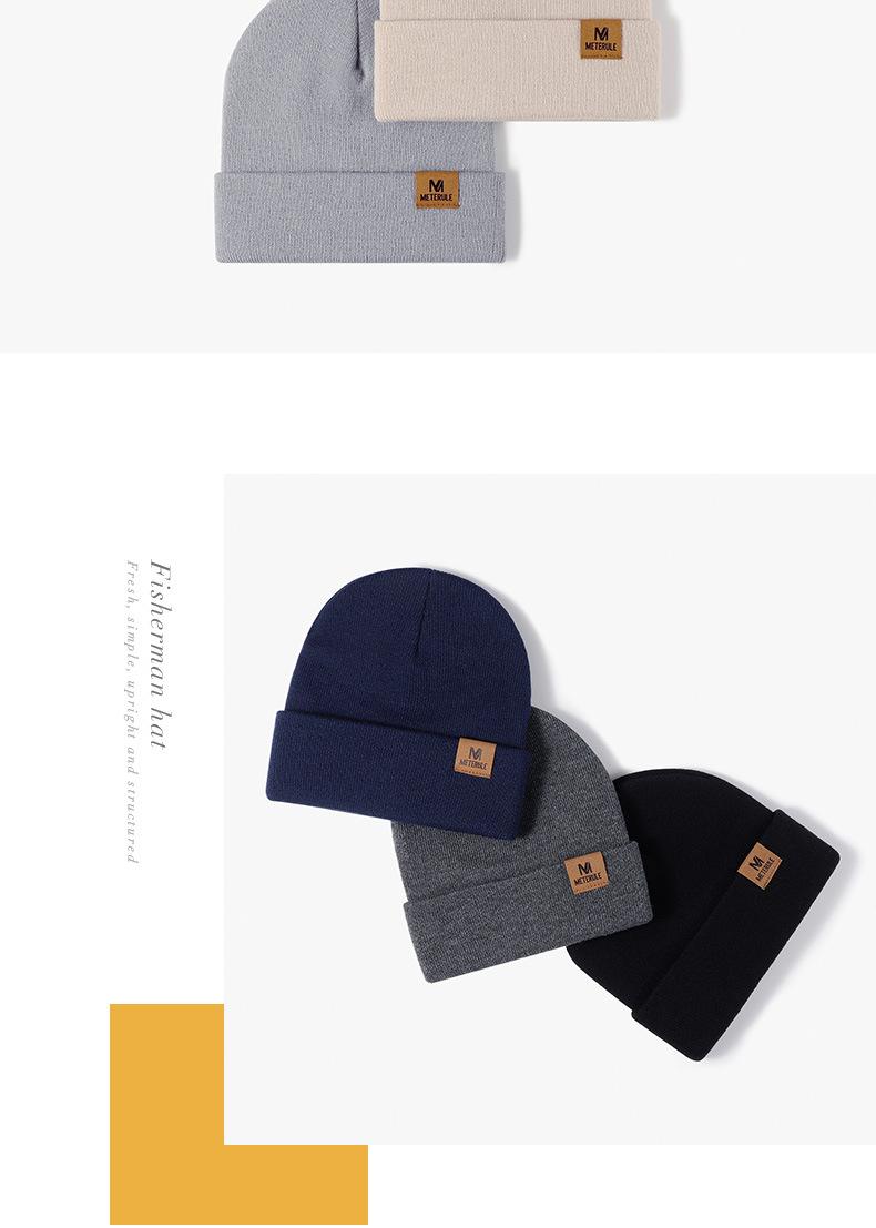 Nova etiqueta de couro de outono e inverno carta masculina chapéu de malha transfronteiriço ao ar livre quente chapéu frio moda feminina chapéu de lã para todos os fósforos