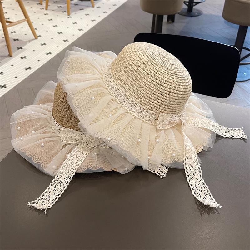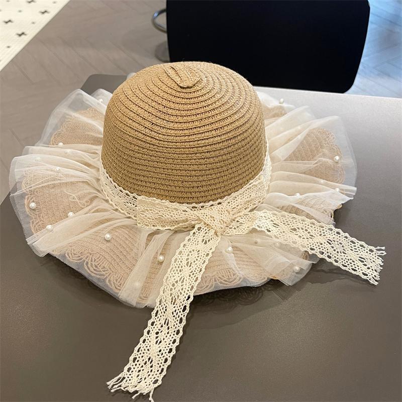 Beige (Pearl straw hat) set + reference 2-6 years old/hat circumference 49-52cm, Curry color (Pearl straw hat)...