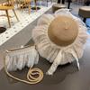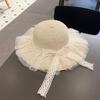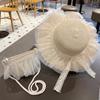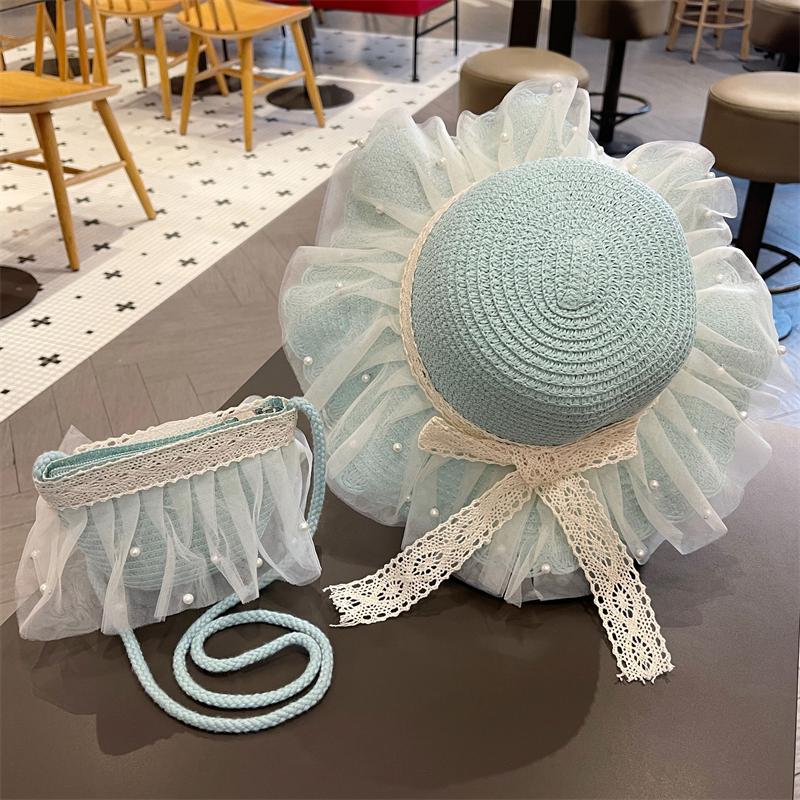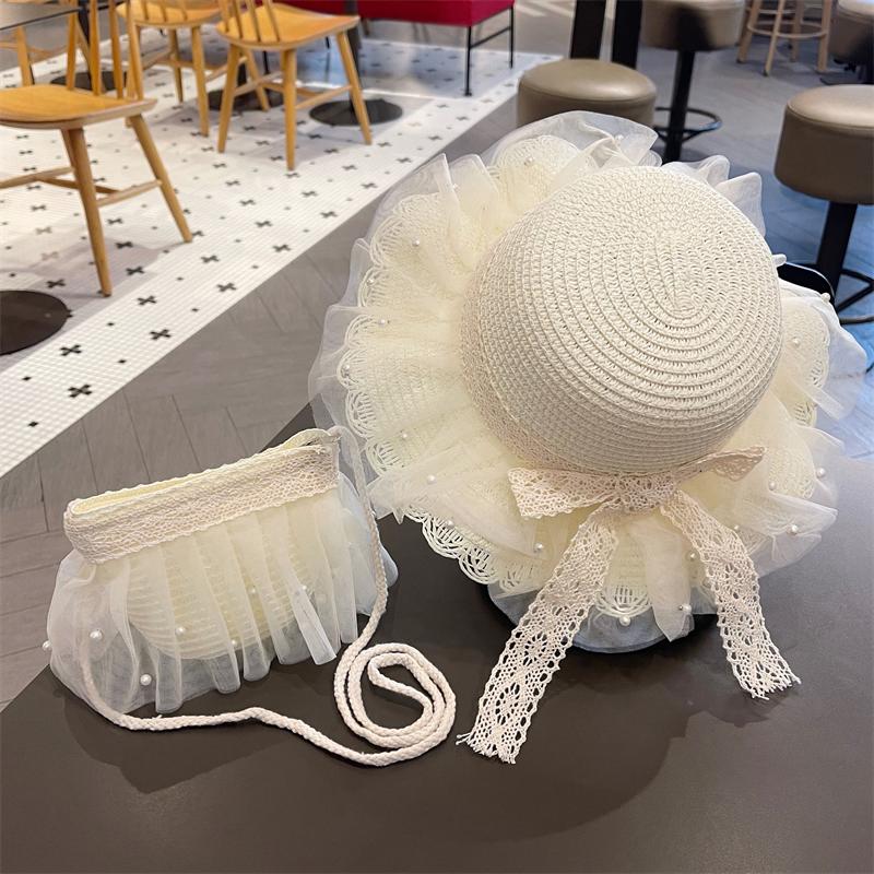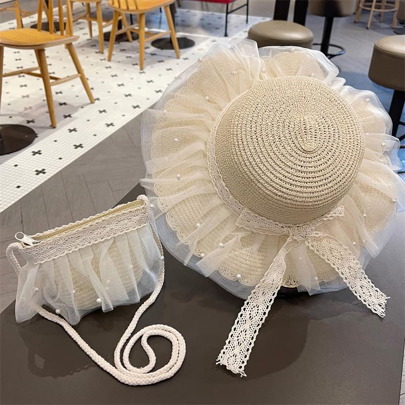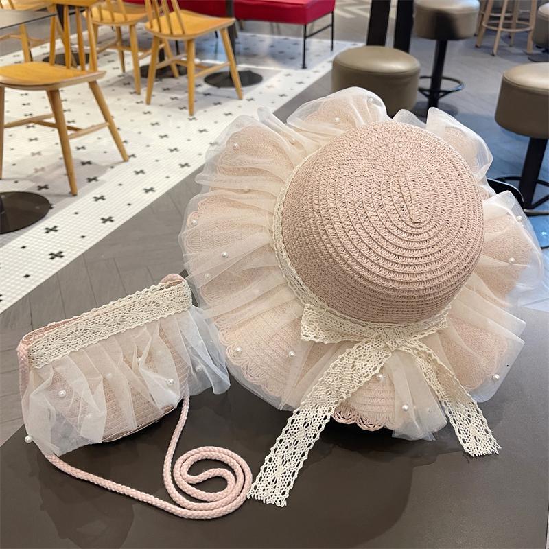 Chapéu protetor solar infantil verão meninas guarda-sol chapéu de palha bolsa conjunto bebê menina elegante renda princesa praia chapéu