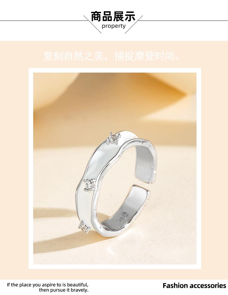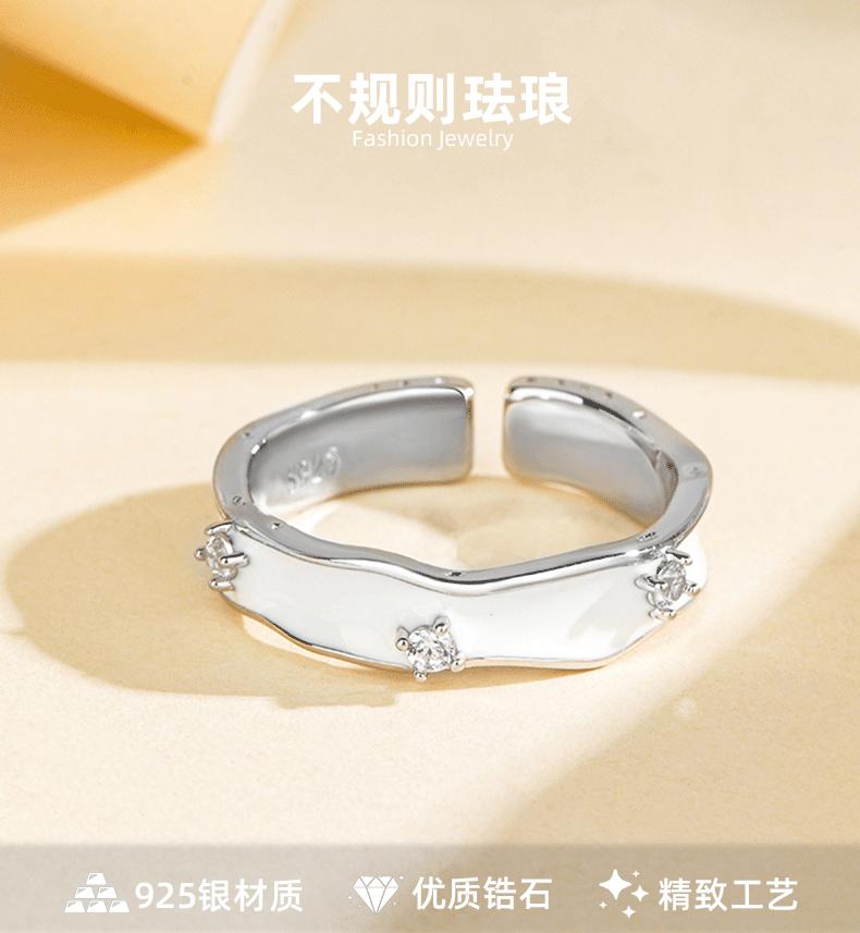 Compre 925 prata esterlina retrô anel irregular Anel de dedo indicador estilo ins das mulheres moda simples epóxi branco simples anel liso boca aberta no atacado no Joom.pro