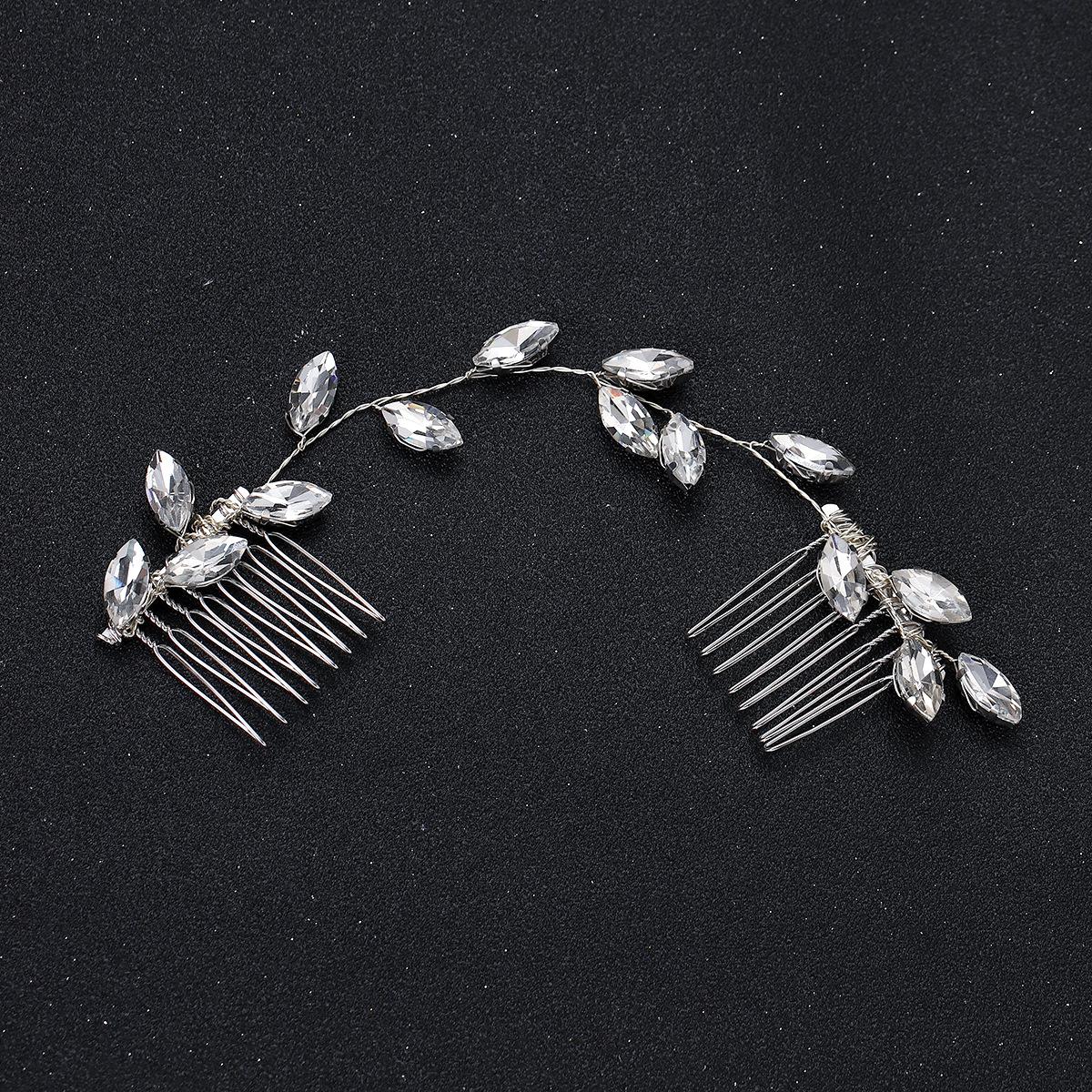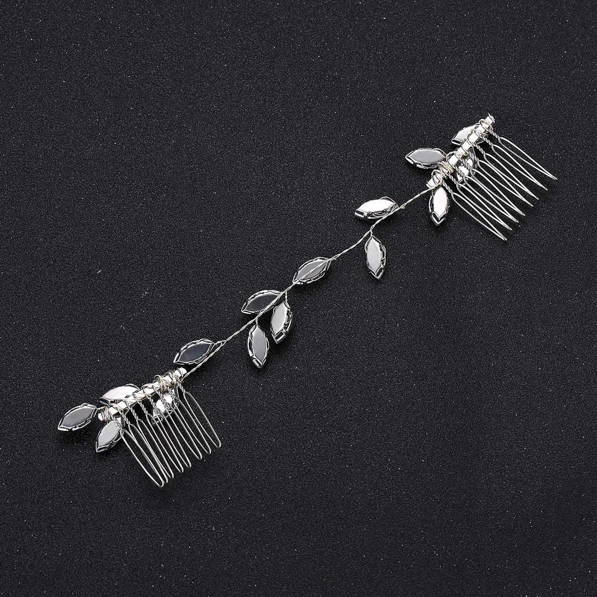 Acessórios para cabelo de noiva transfronteiriços europeus e americanos, pente de cabelo duplo com diamante oval de vidro e olho de cavalo